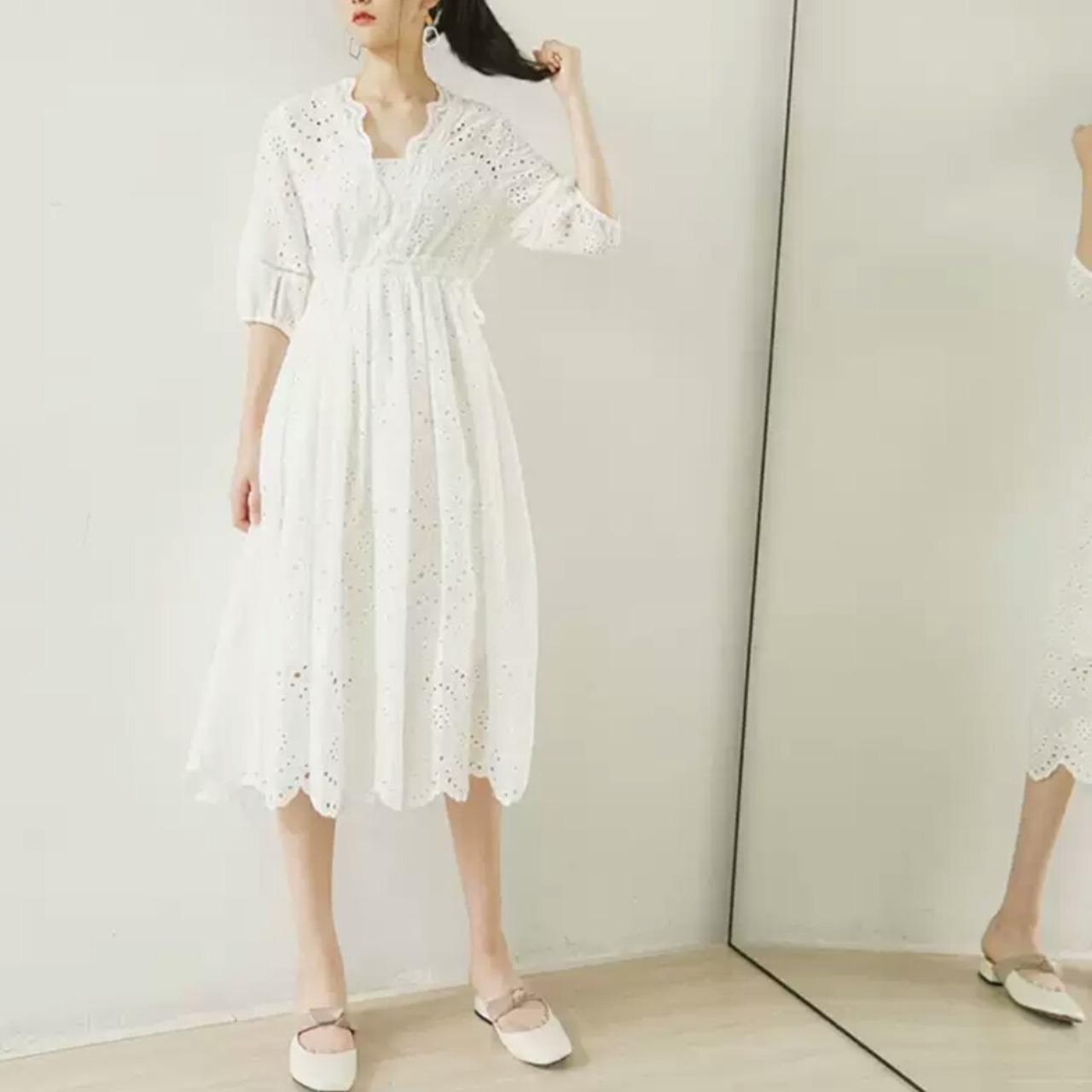 レースワンピース シンプル 白 爽やか 大人 カジュアル キレイめ 可愛い 上品 お出かけ お買い物 デート 女子会 通学 学生 通勤 韓国ファッション