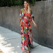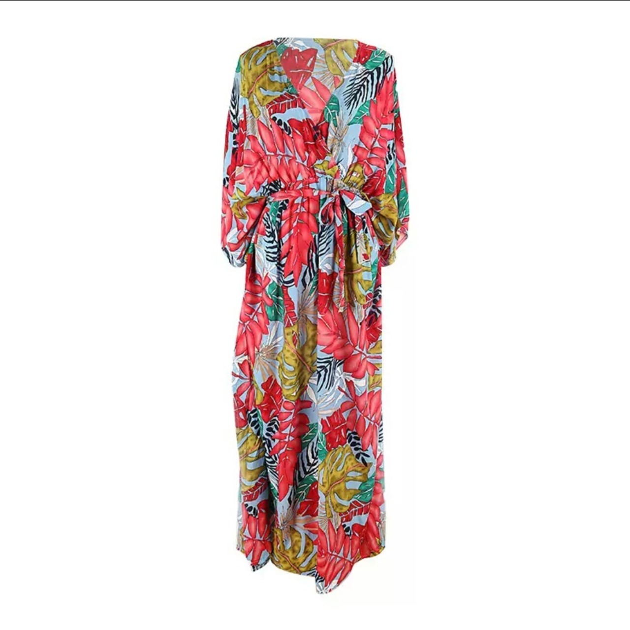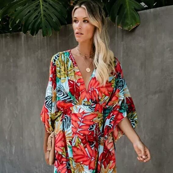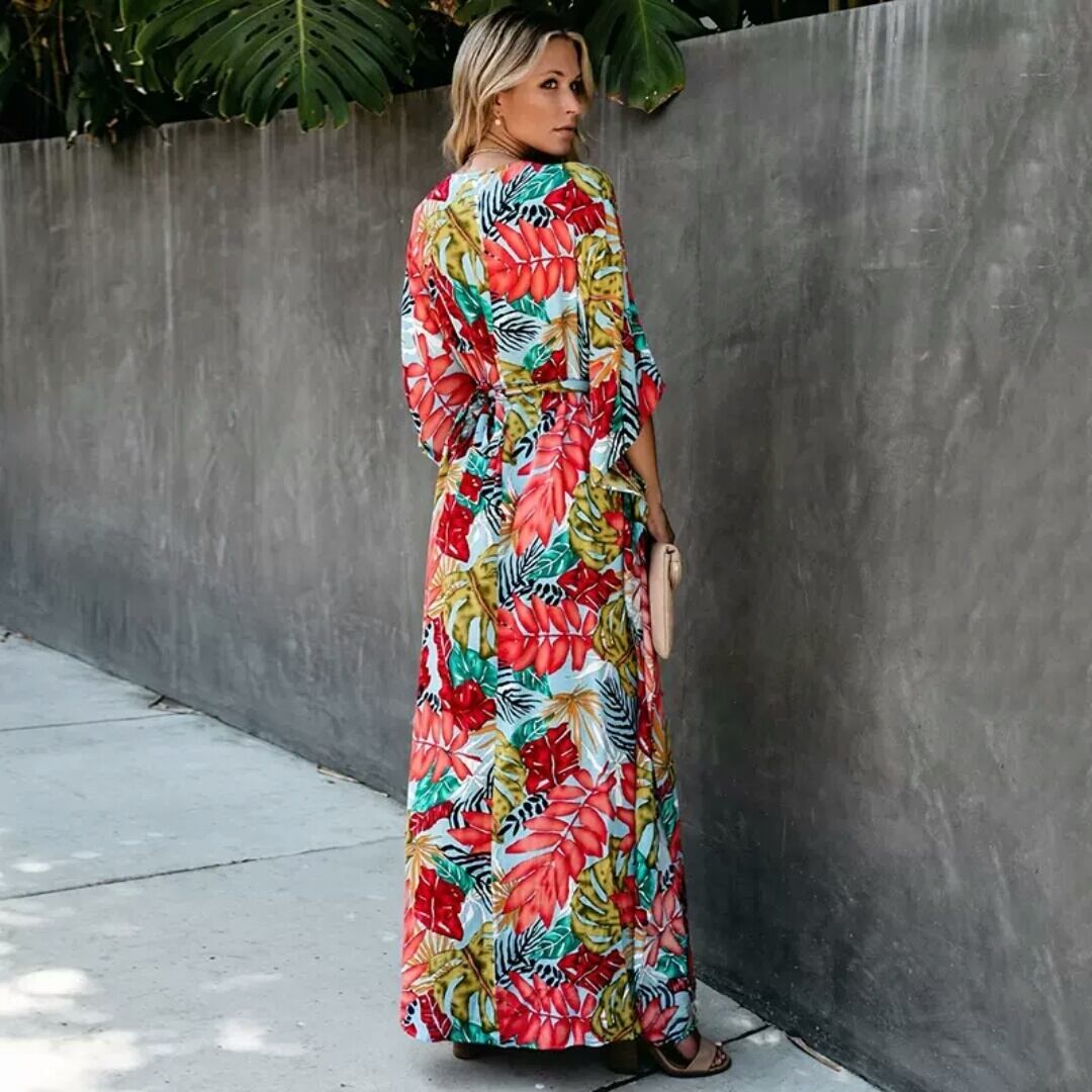 花柄 マキシ丈 ワンピース Vネック 個性的 リゾート ビーチ 大人 エレガント 上品 キレイめ お出かけ お買い物 デート 女子会 通学 学生 通勤 韓国ファッション