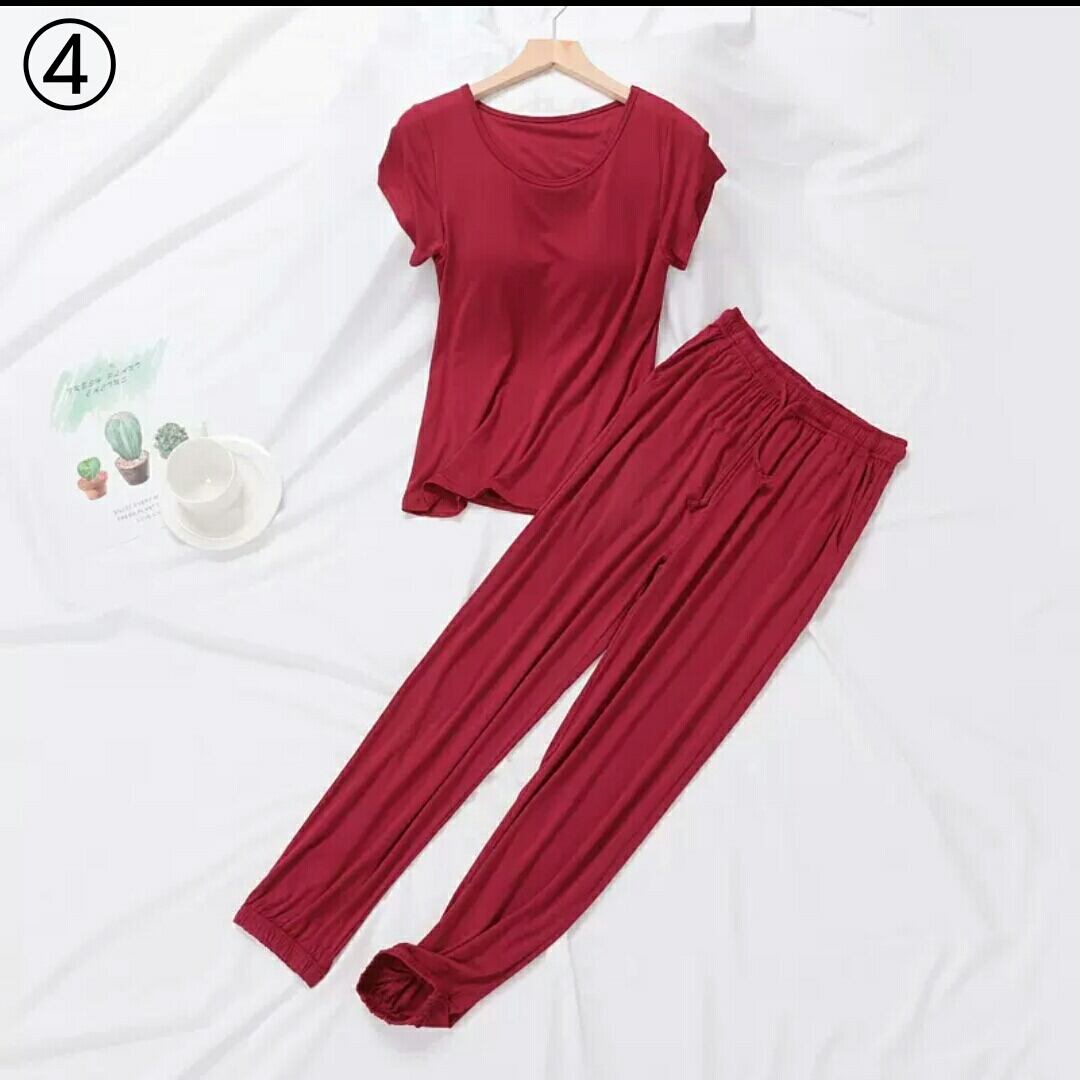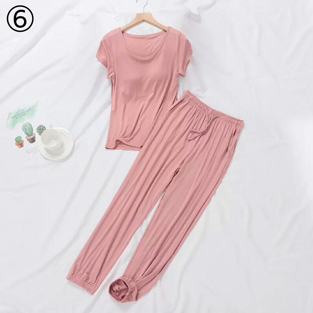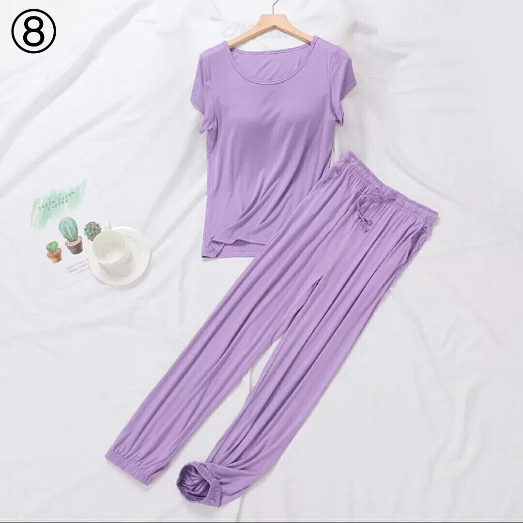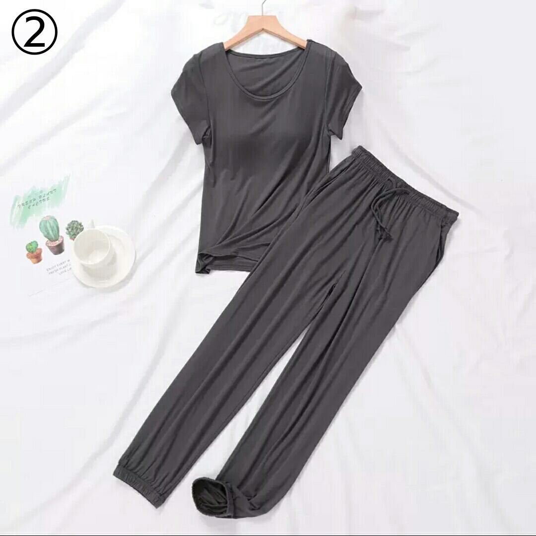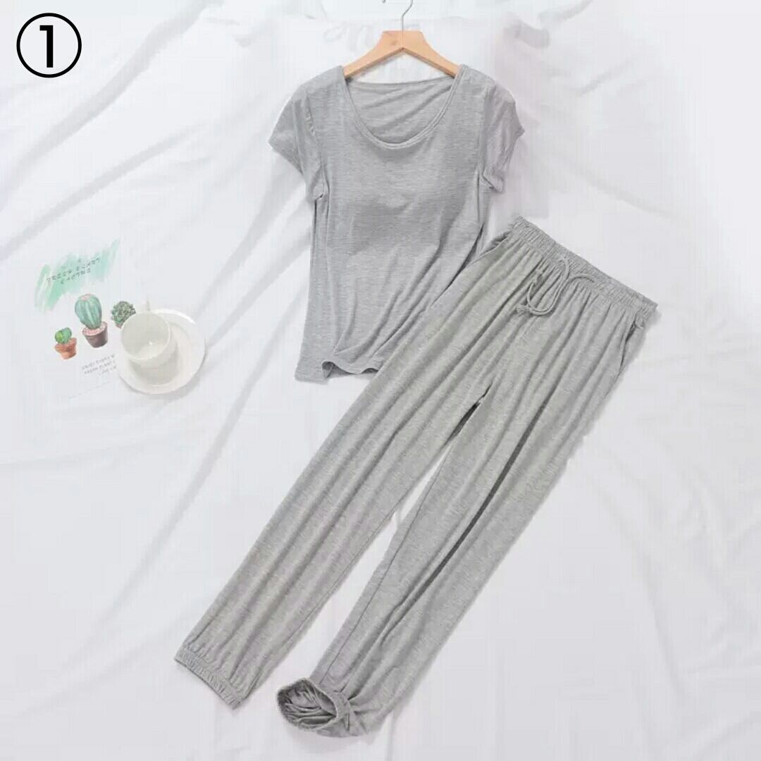 全9色 ルームウエア セットアップ ツーピース トップス パンツ 無地 胸パッド 大人 カジュアル 楽チン リラックス ゆったり 部屋着 春 夏