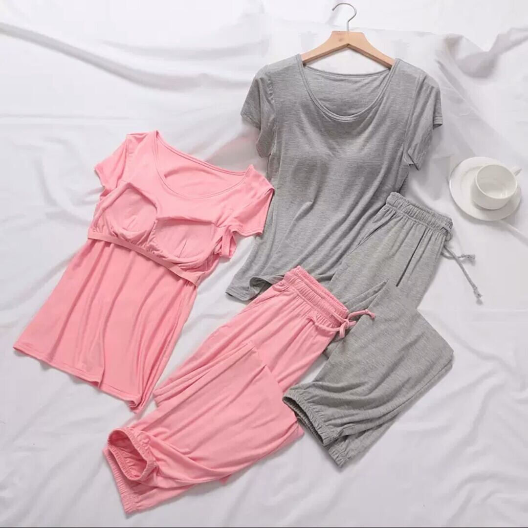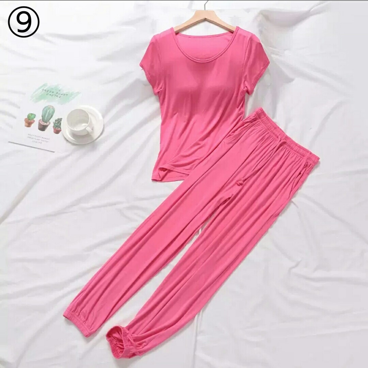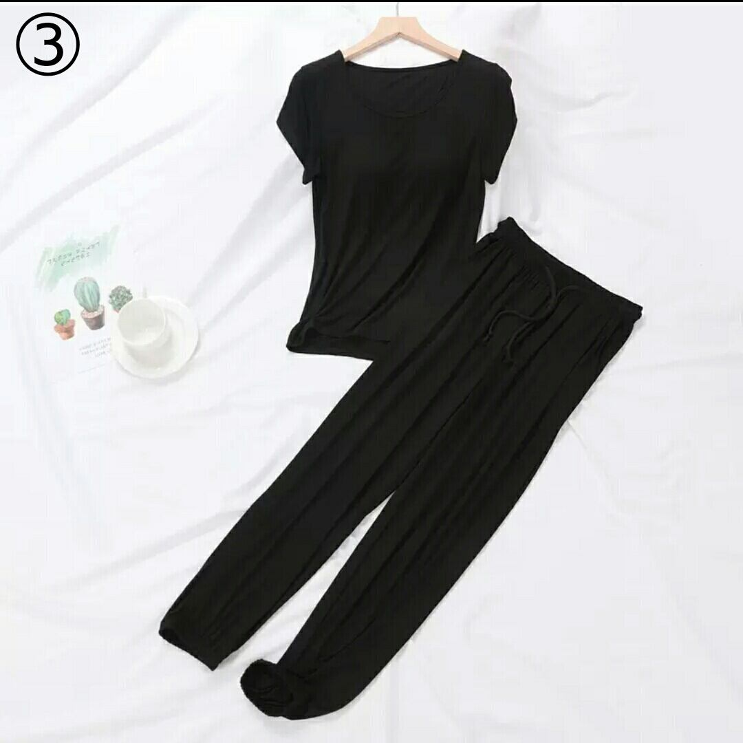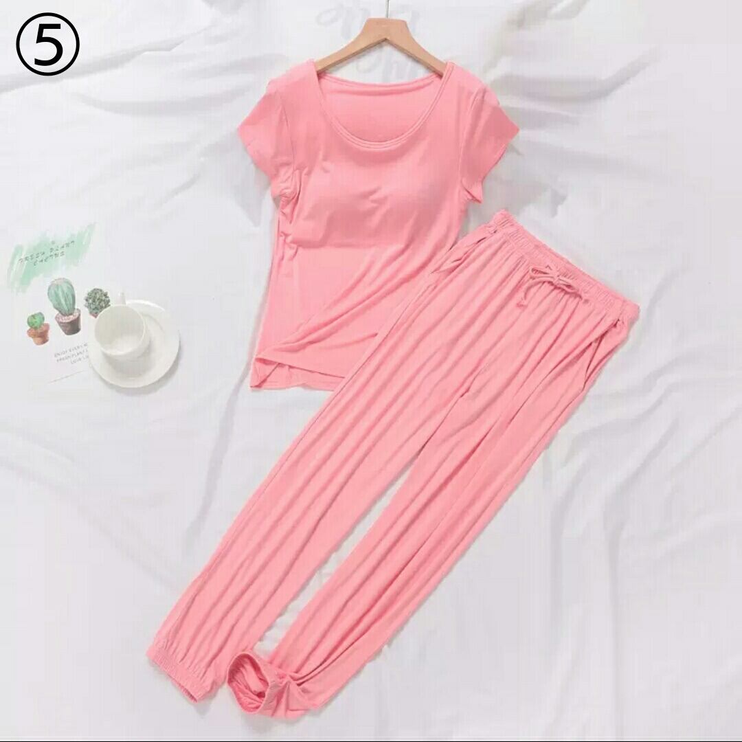 全9色 ルームウエア セットアップ ツーピース トップス パンツ 無地 胸パッド 大人 カジュアル 楽チン リラックス ゆったり 部屋着 春 夏