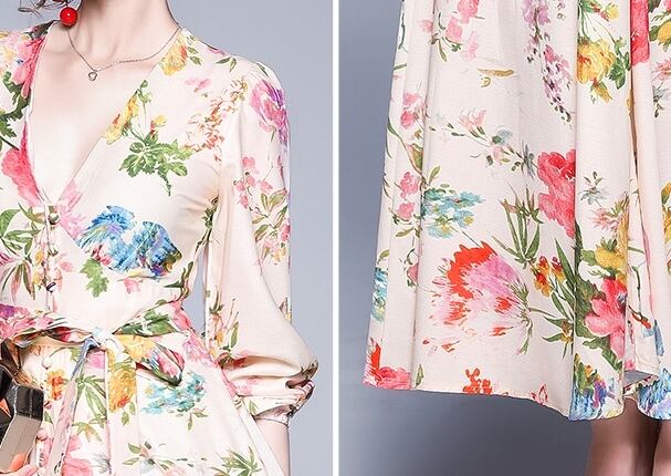 トレンドの花柄が華やかな印象のワンピースです。