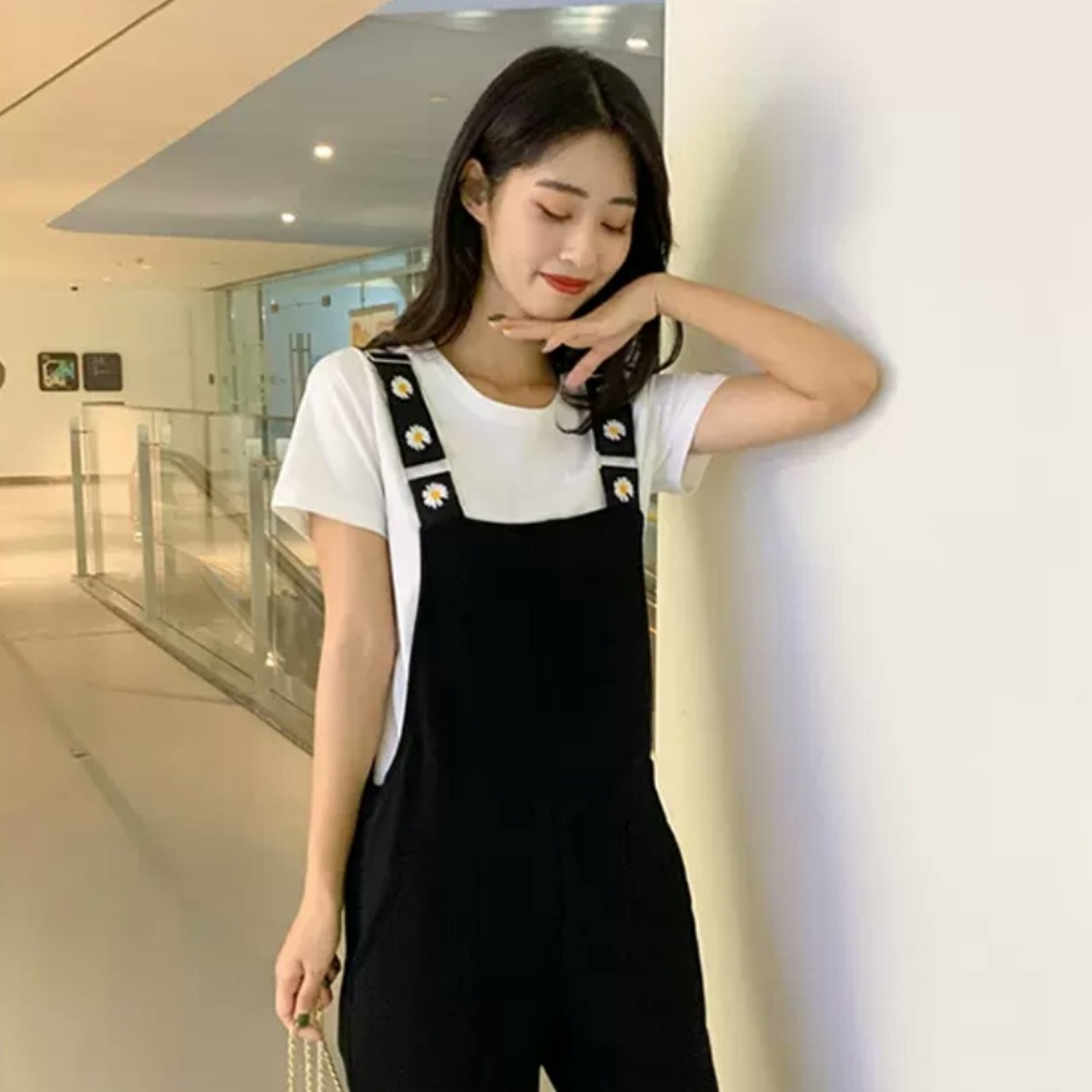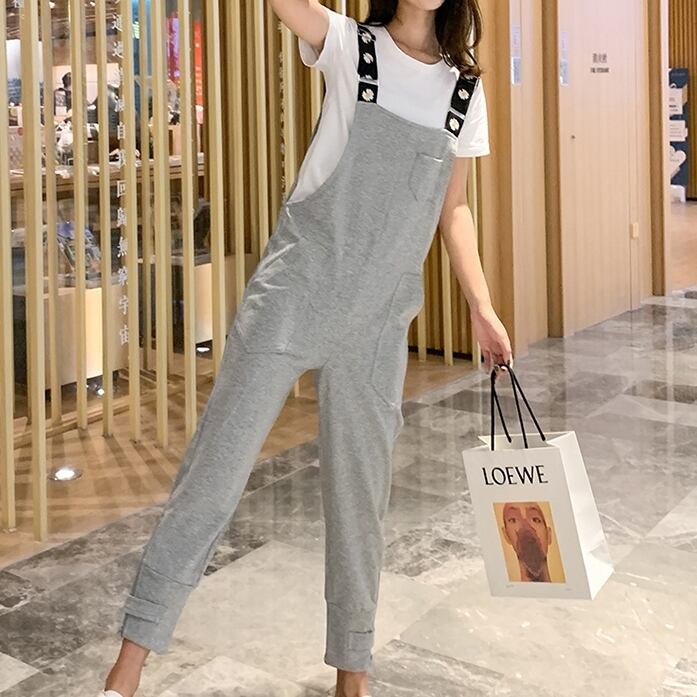 全2色 デイジー柄 花柄 サスペンダー パンツ ストラップ 大人 カジュアル キレイめ シンプル 無地 可愛い お出かけ お買い物 デート 女子会 通学 学生 通勤 韓国ファッション 春 夏