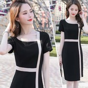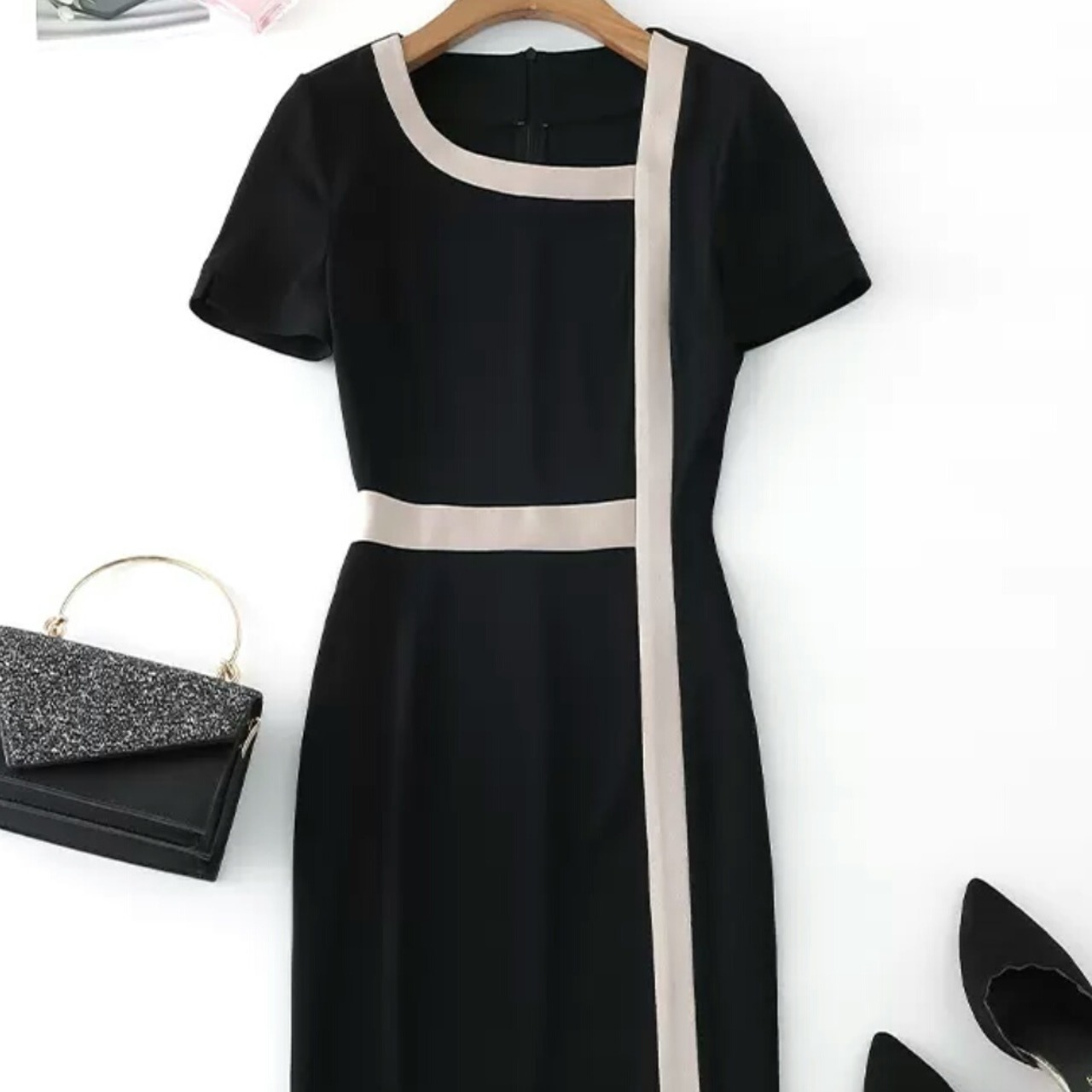 全2色 大きいサイズ シンプル スタイリッシュ ひざ丈 ワンピース ドレス オフィス 上品 エレガント スリム 大人 キレイめ お呼ばれ パーティー 会食 お出かけ お買い物 デート 女子会 通学 学生 通勤 韓国ファッション 春 夏