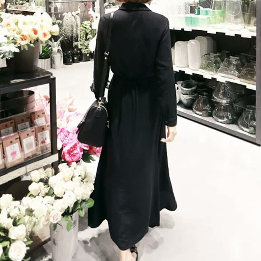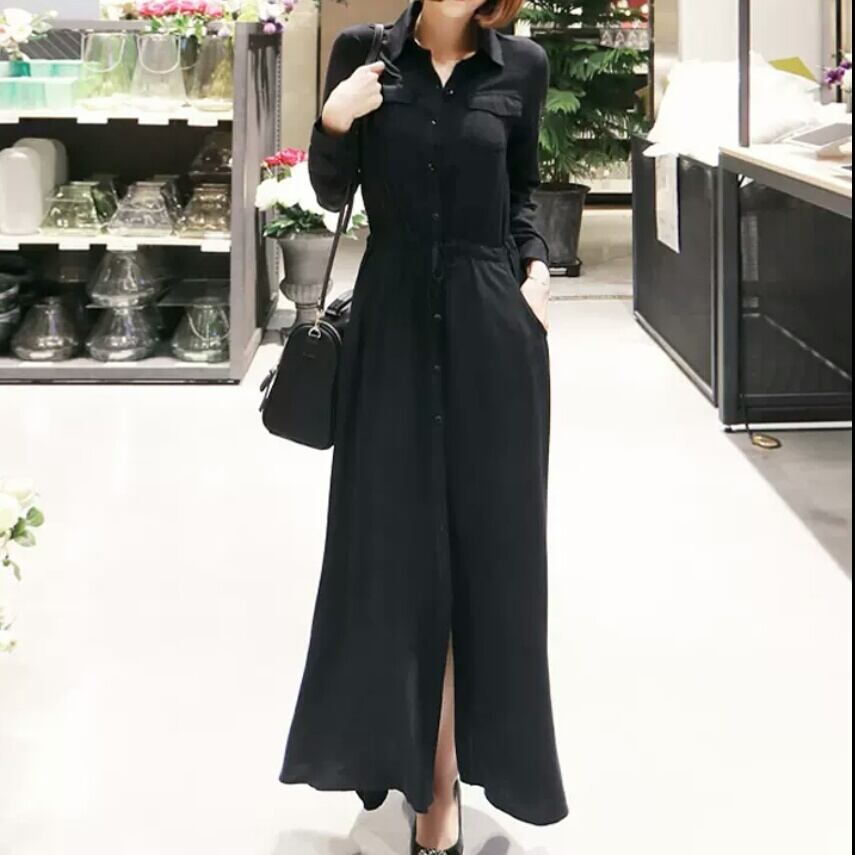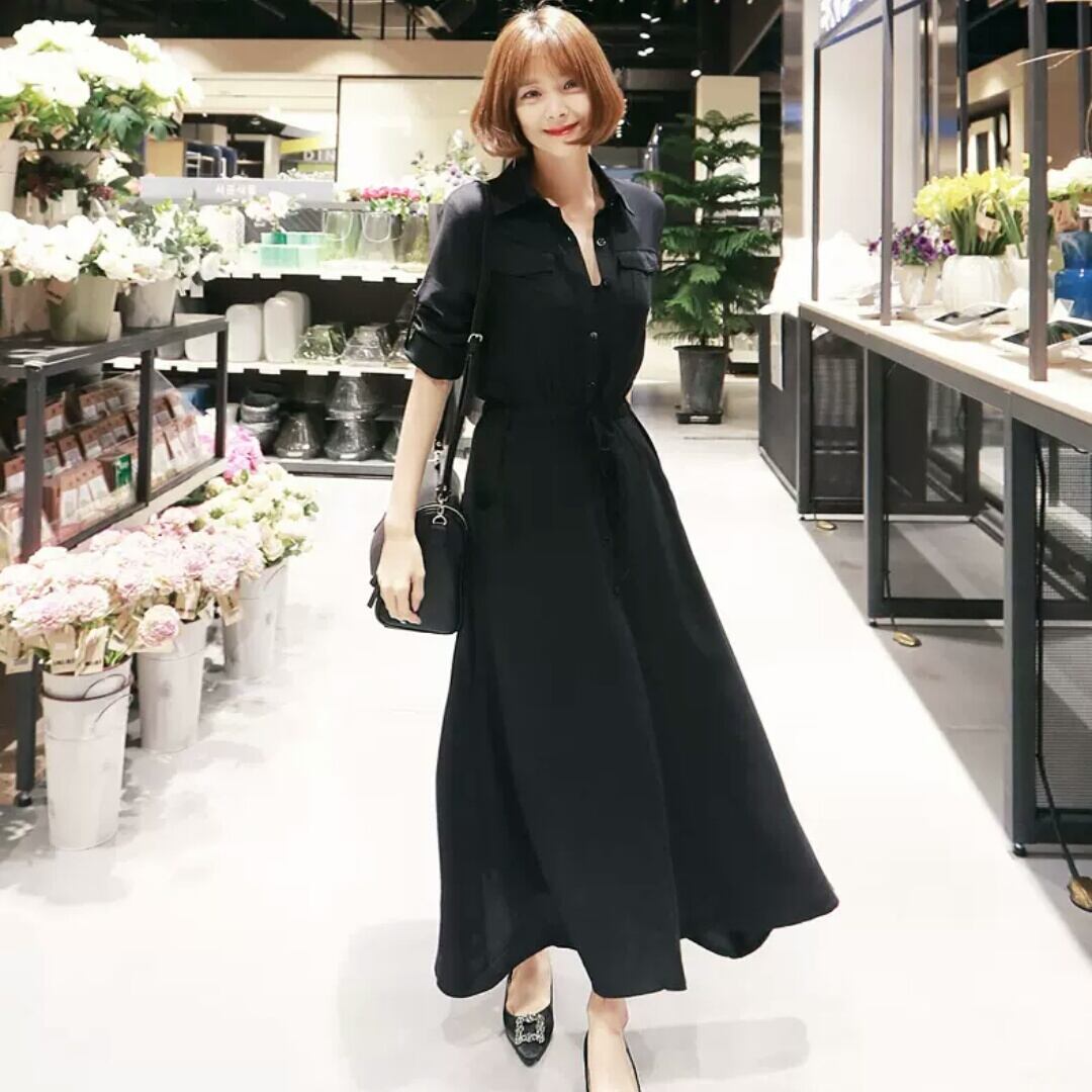 全2色 無地 シンプル シャツ ワンピース リボン マキシ丈 大人 カジュアル キレイめ 可愛い お出かけ お買い物 デート 女子会 通学 学生 通勤 韓国ファッション 春 夏 秋