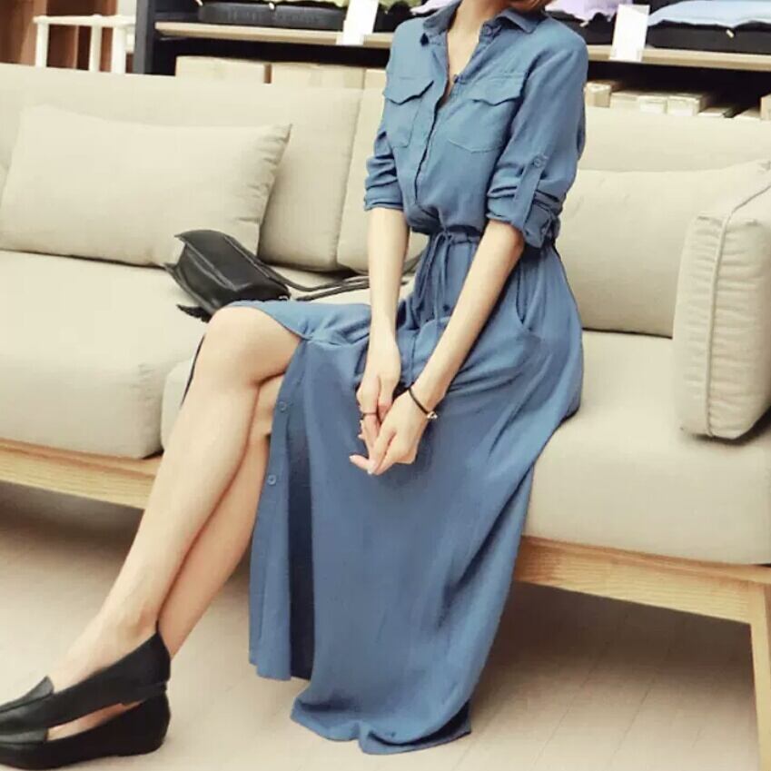 シンプルなマキシ丈のシャツワンピース♪
