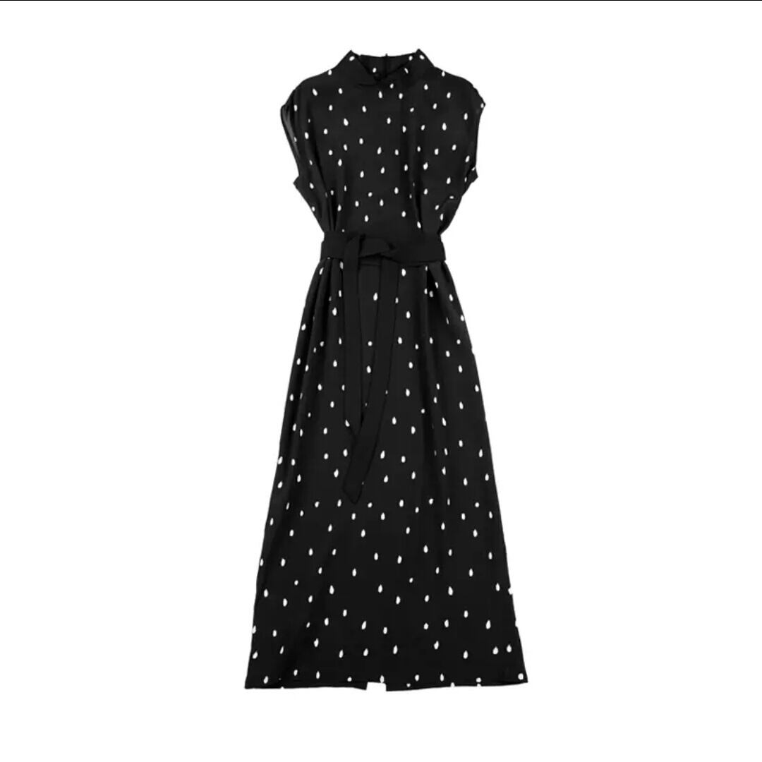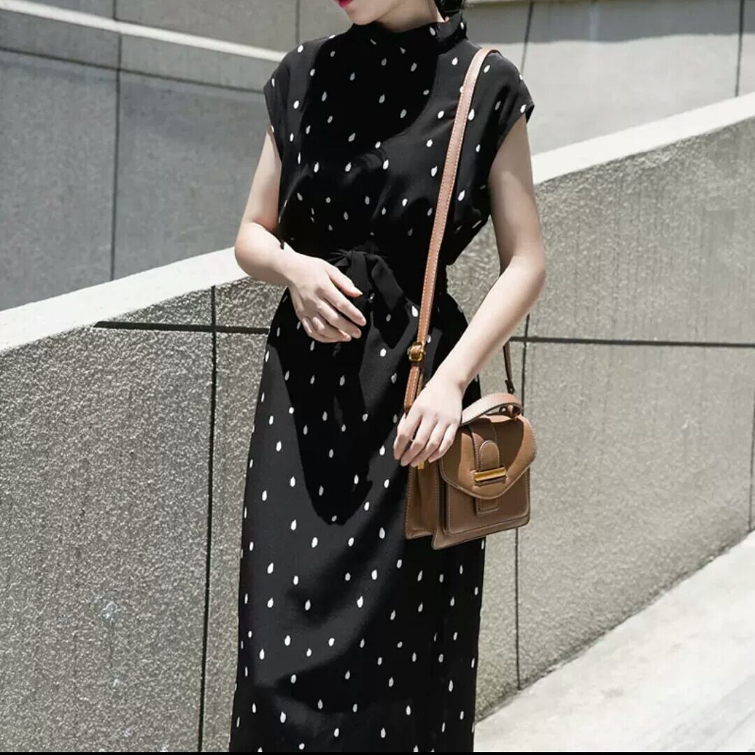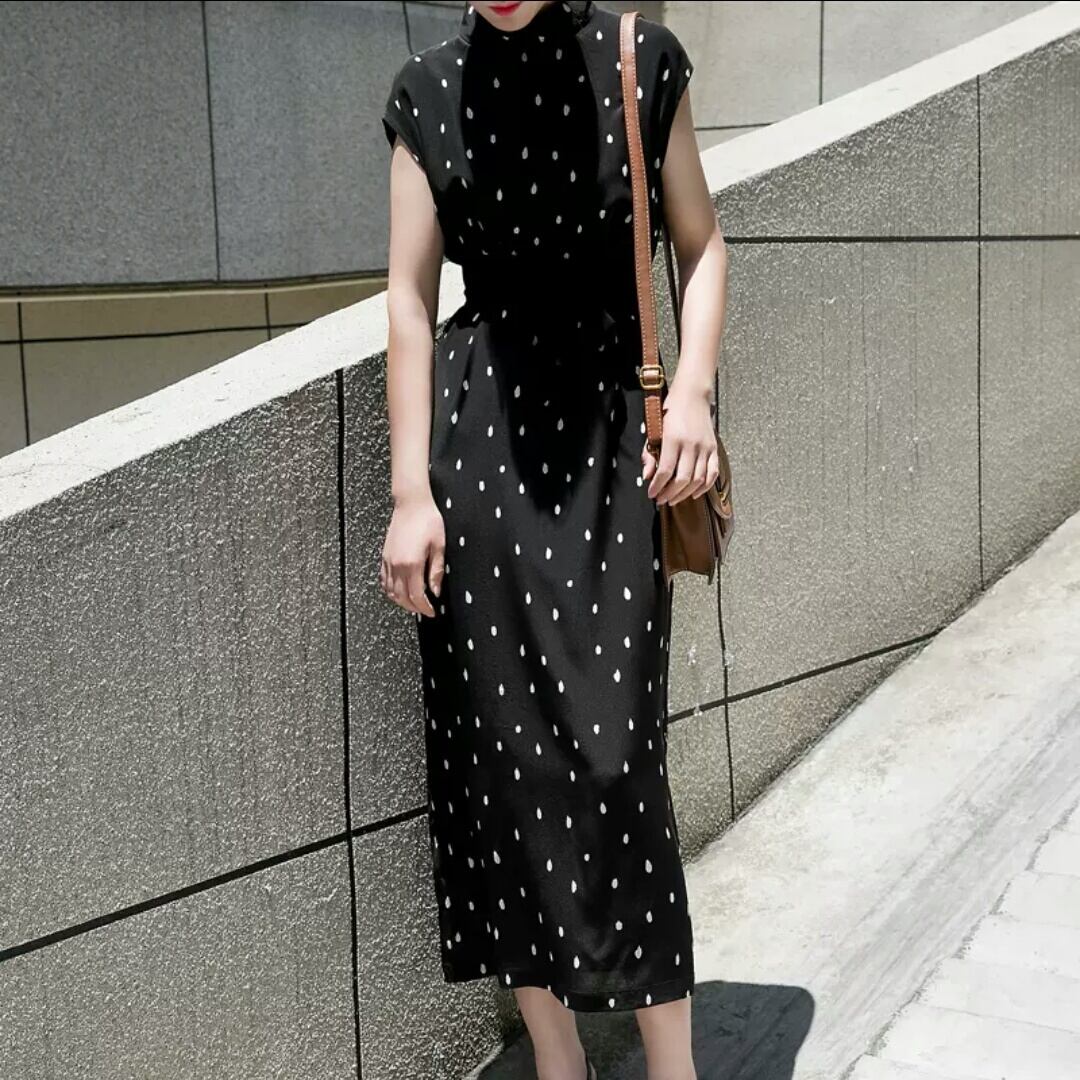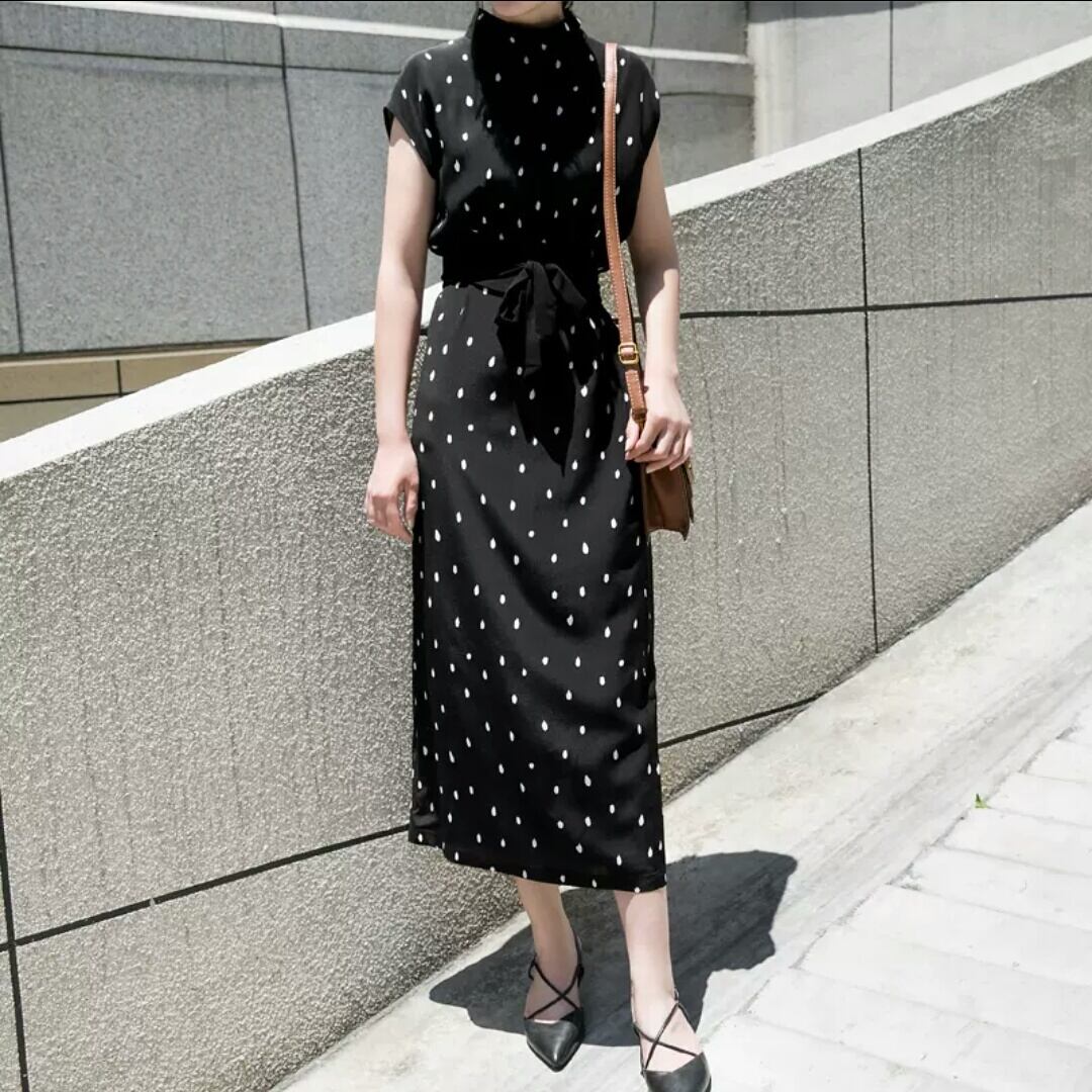 ドット柄 ノースリーブ スリム ワンピース 水玉 大人 キレイめ フェミニン 上品 お出かけ お買い物 デート 女子会 通学 学生 通勤 韓国ファッション 春 夏
