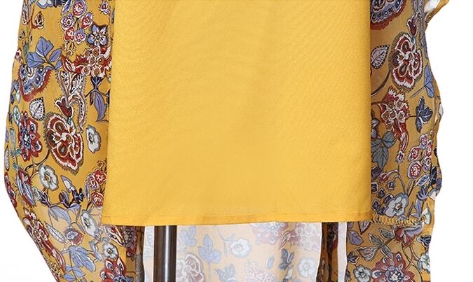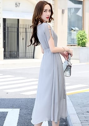 サイドのスリット入りがアクセントになり、軽やかな素材で歩くたびに動きのある表情を演出します。