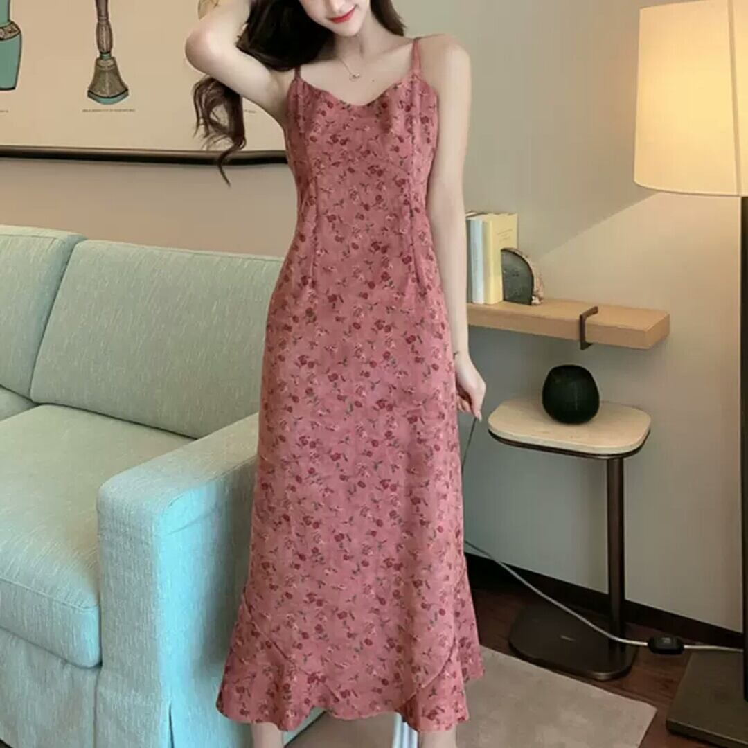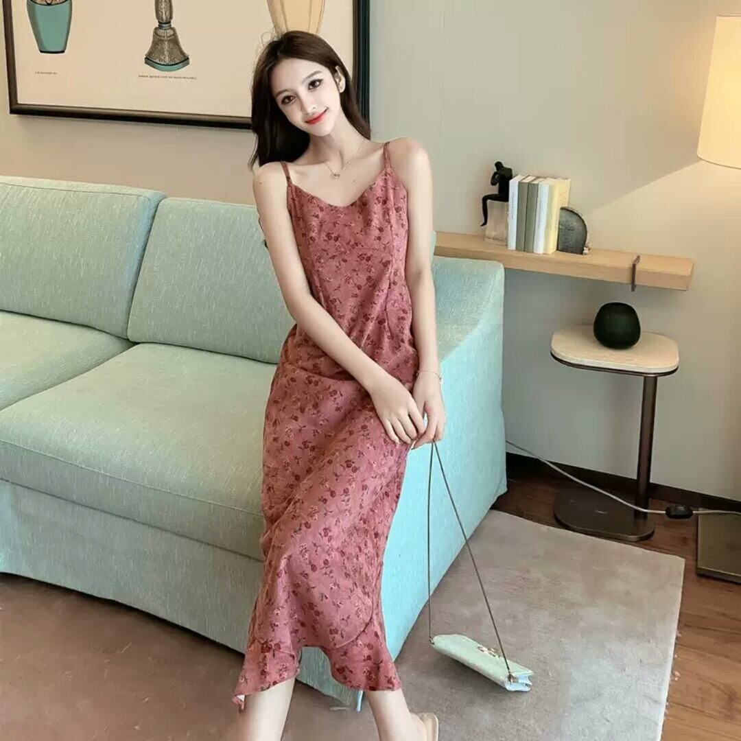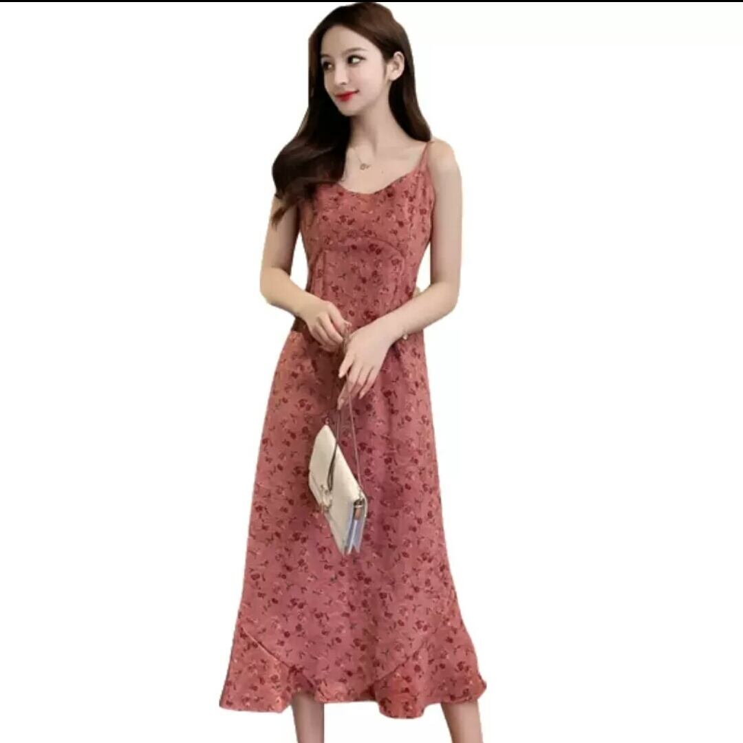 ベルベット ストラップ ワンピース ミモレ丈 無地 シンプル 大人 カジュアル 可愛い キレイめ お出かけ お買い物 デート 女子会 通学 学生 通勤 韓国ファッション 春 夏 秋 大きいサイズ