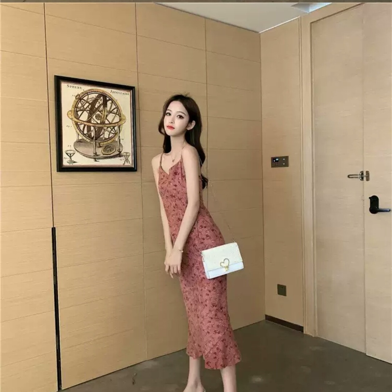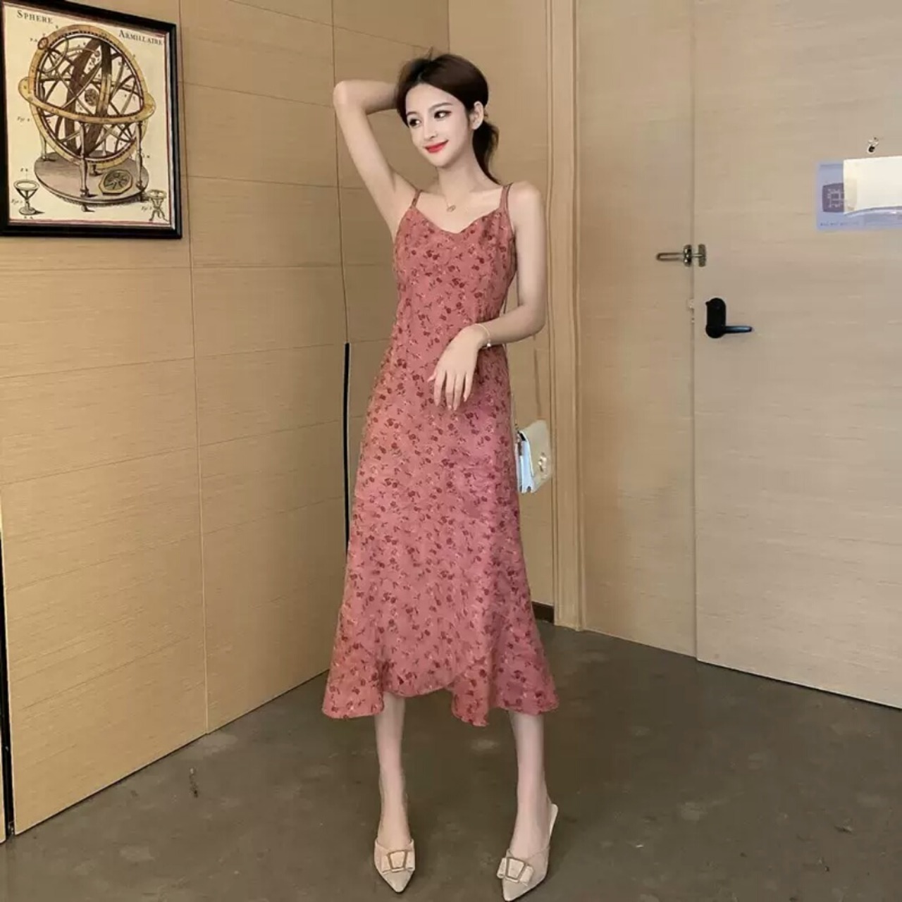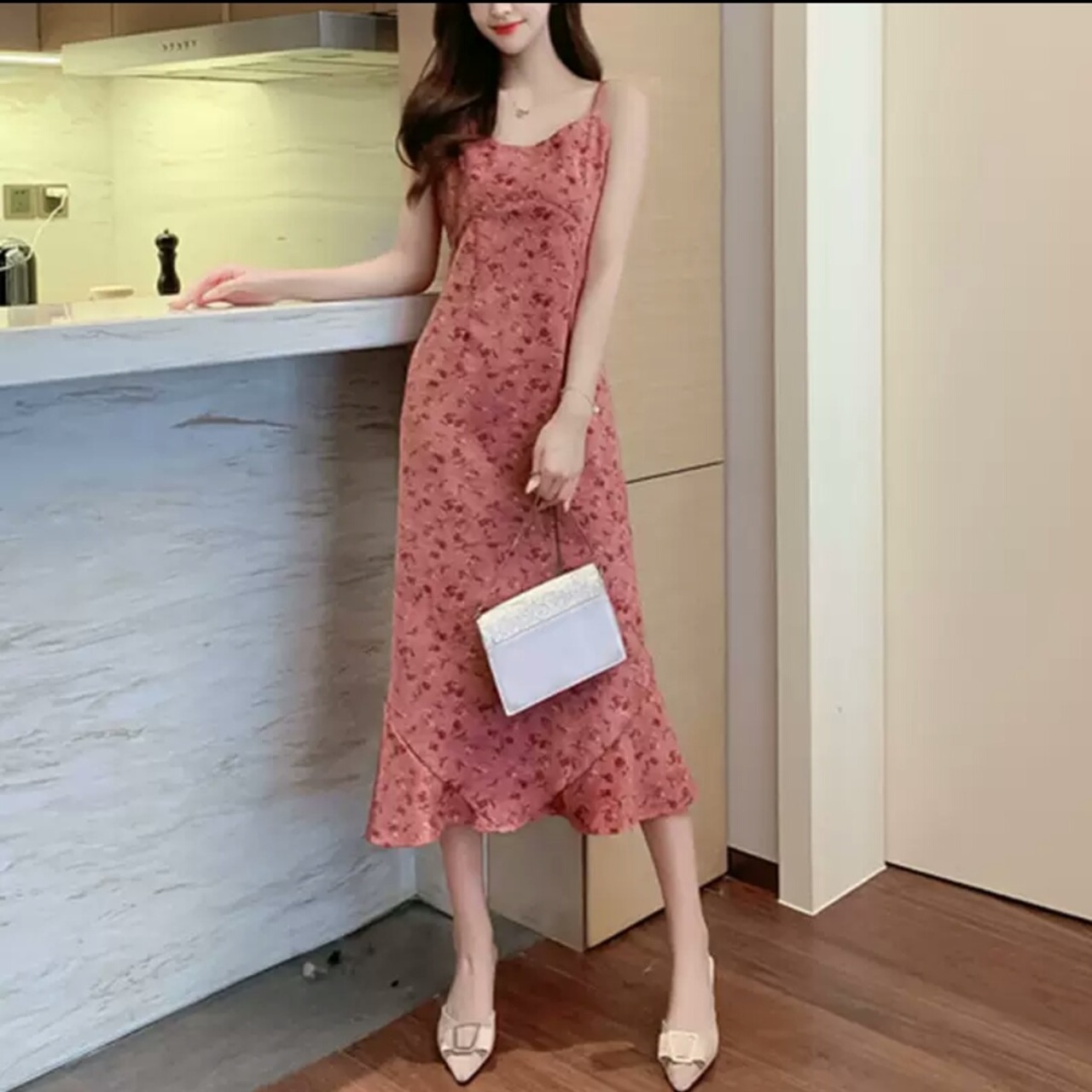 ベルベット ストラップ ワンピース ミモレ丈 無地 シンプル 大人 カジュアル 可愛い キレイめ お出かけ お買い物 デート 女子会 通学 学生 通勤 韓国ファッション 春 夏 秋 大きいサイズ