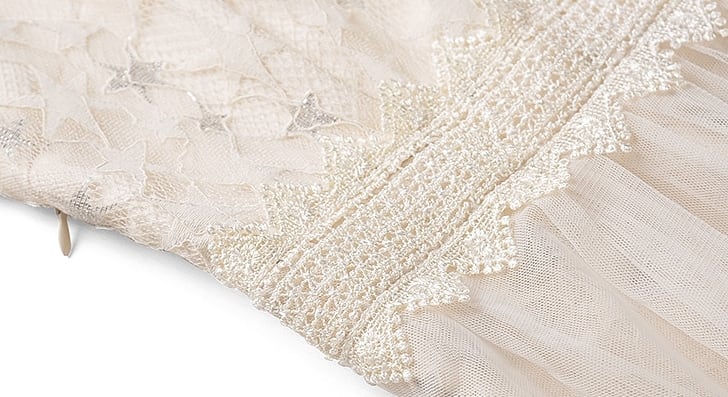 Aラインなシルエットがフェミニンで、たっぷり重なったチュールが可愛い!