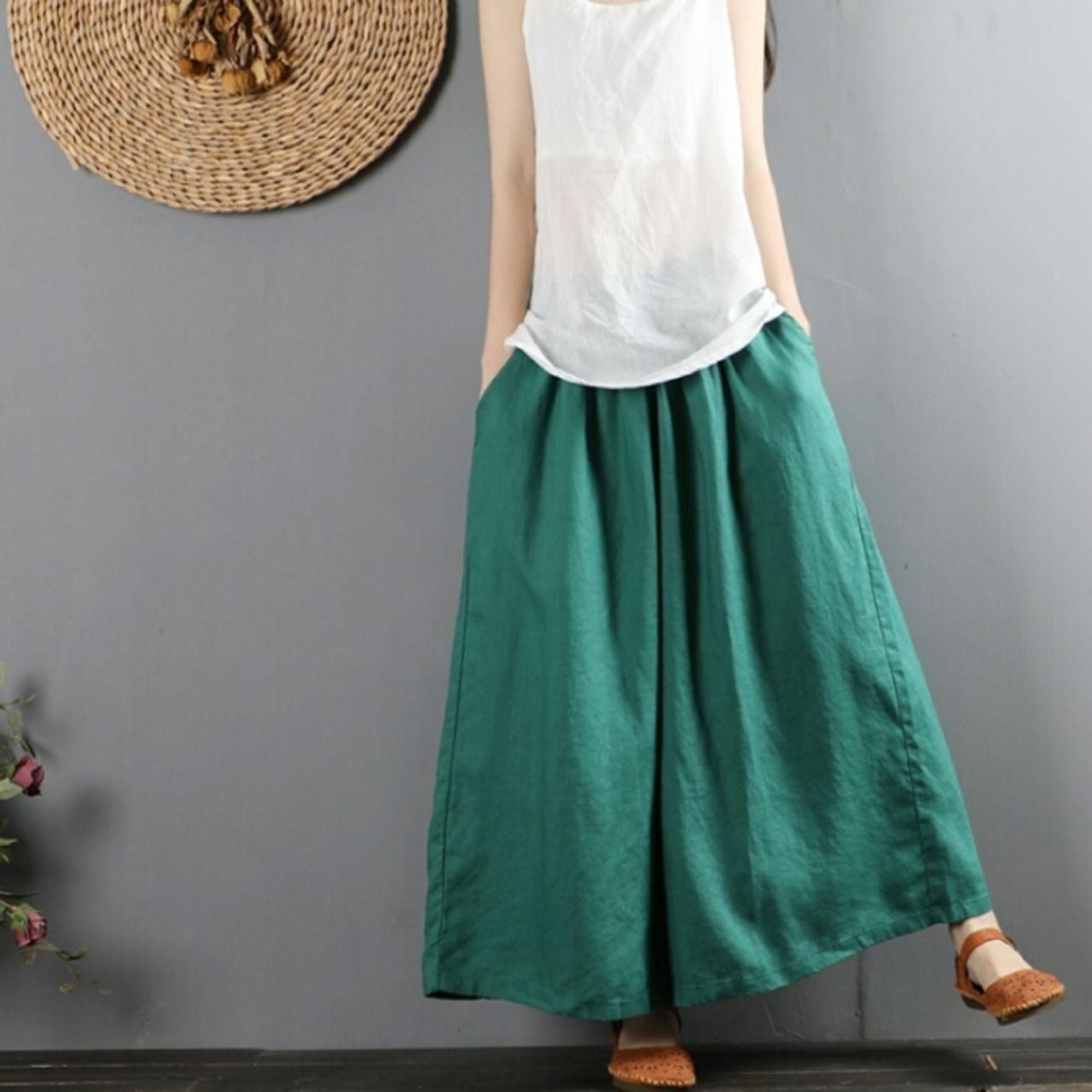 全4色 ワイドレッグ パンツ リネン 大人 カジュアル キレイめ 無地 シンプル お出かけ お買い物 デート 女子会 通学 学生 通勤 韓国ファッション 春 夏 秋