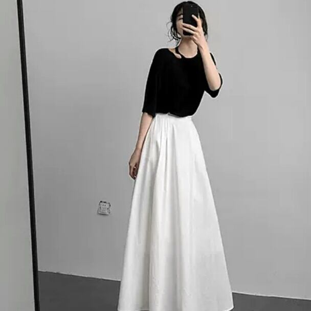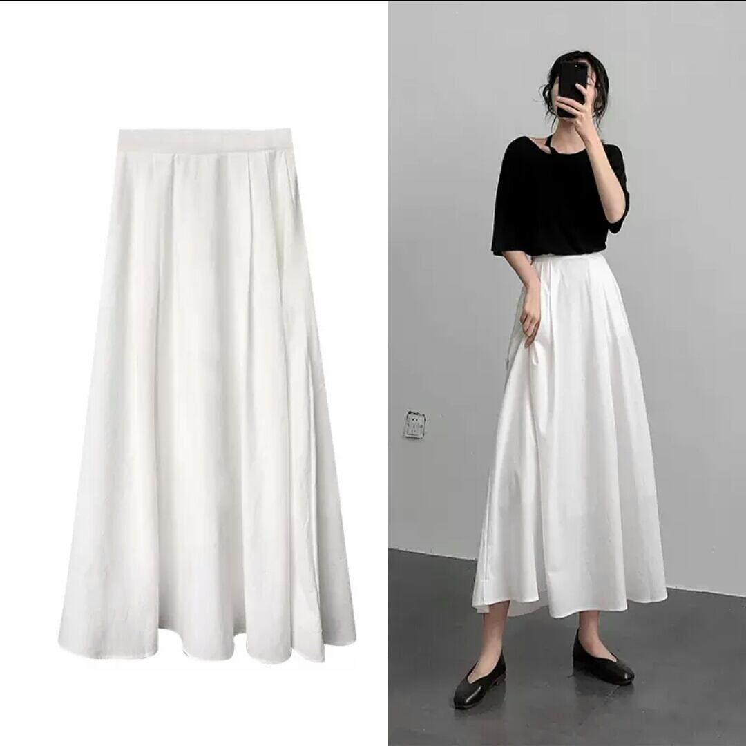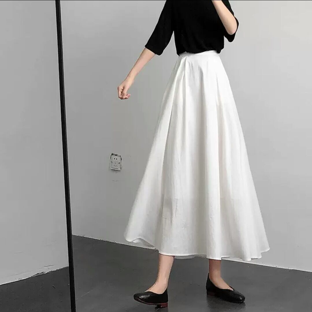 コットン リネン スカート Aライン ミモレ丈 無地 シンプル 大人 カジュアル キレイめ お出かけ お買い物 デート 女子会 通学 学生 通勤 韓国ファッション