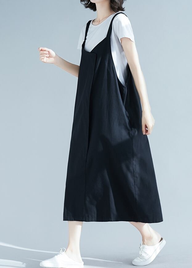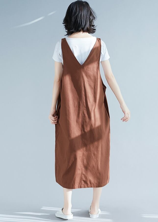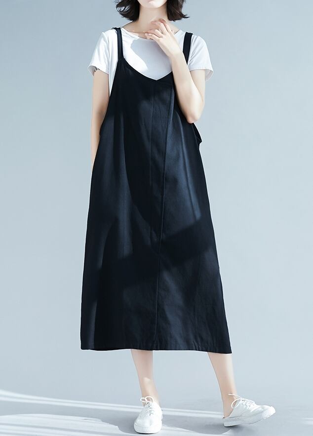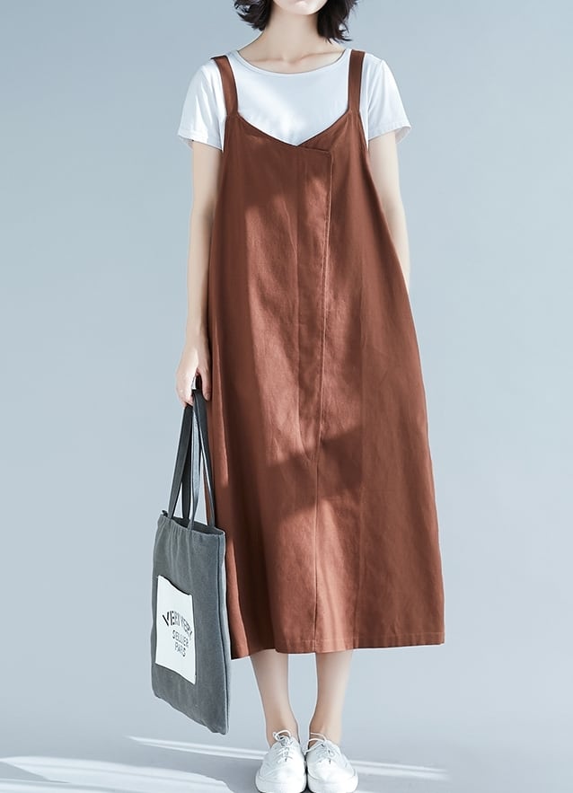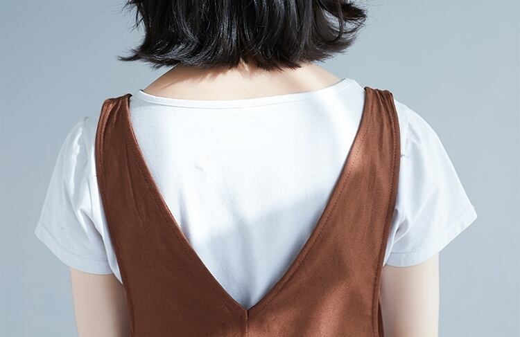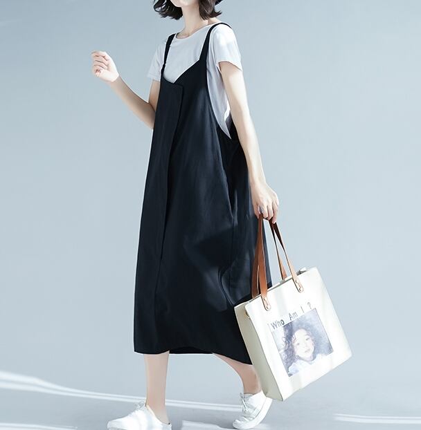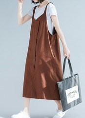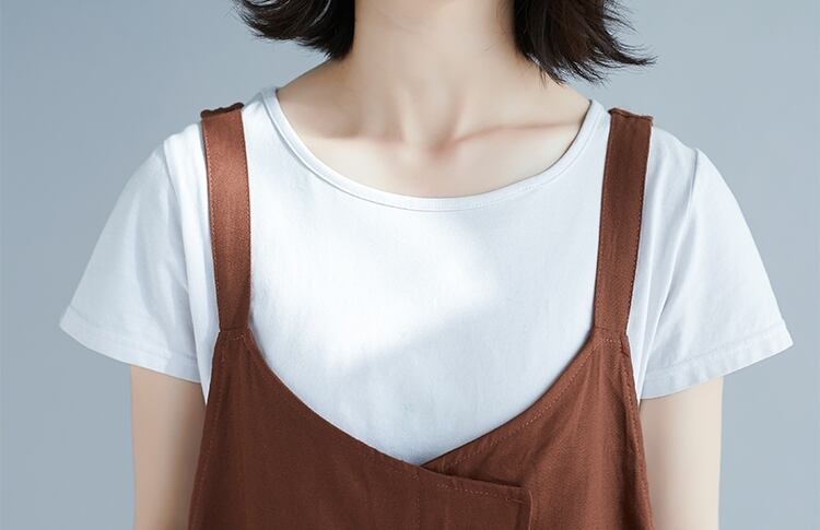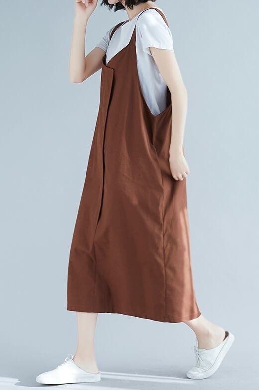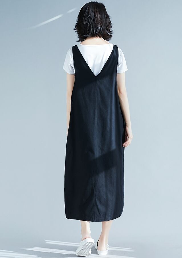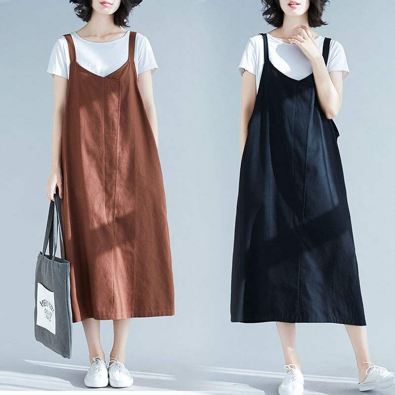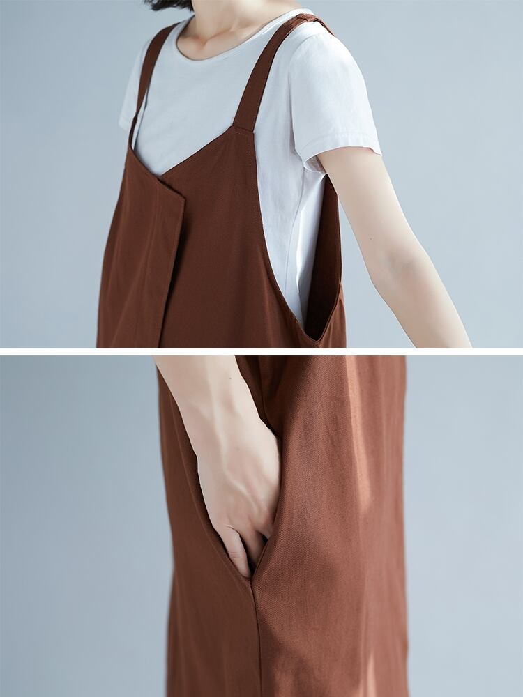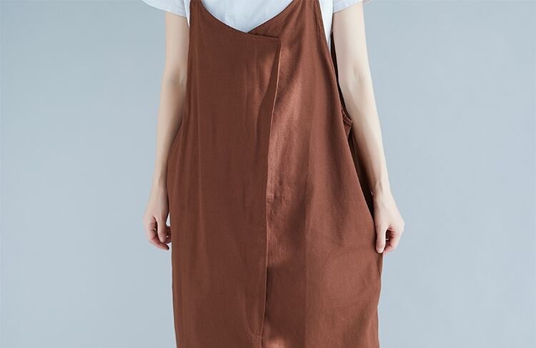 全2色 リネン コットン ジャンパースカート サロペットスカート 麻 綿 ゆったり ビッグシルエット オーバーサイズ 無地 ミモレ丈 大人 カジュアル Vネック 春 夏