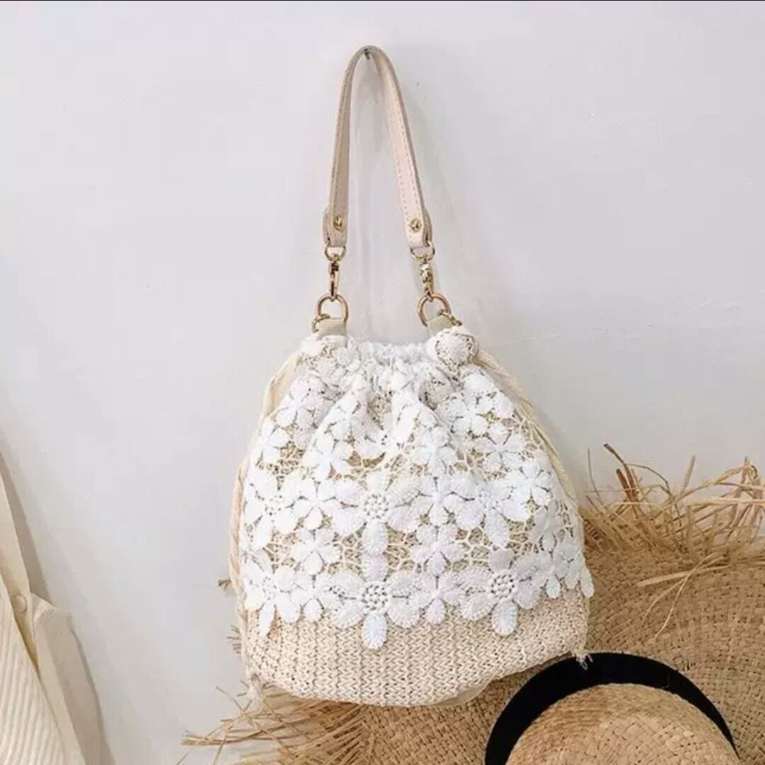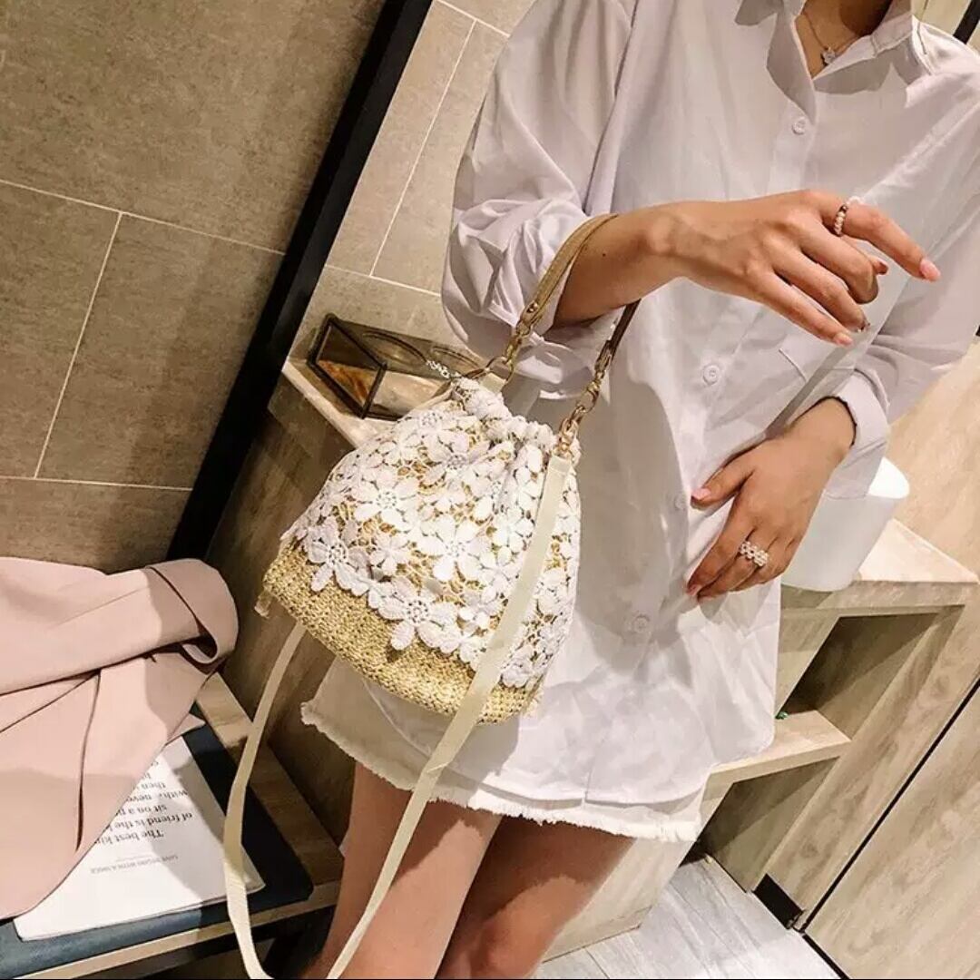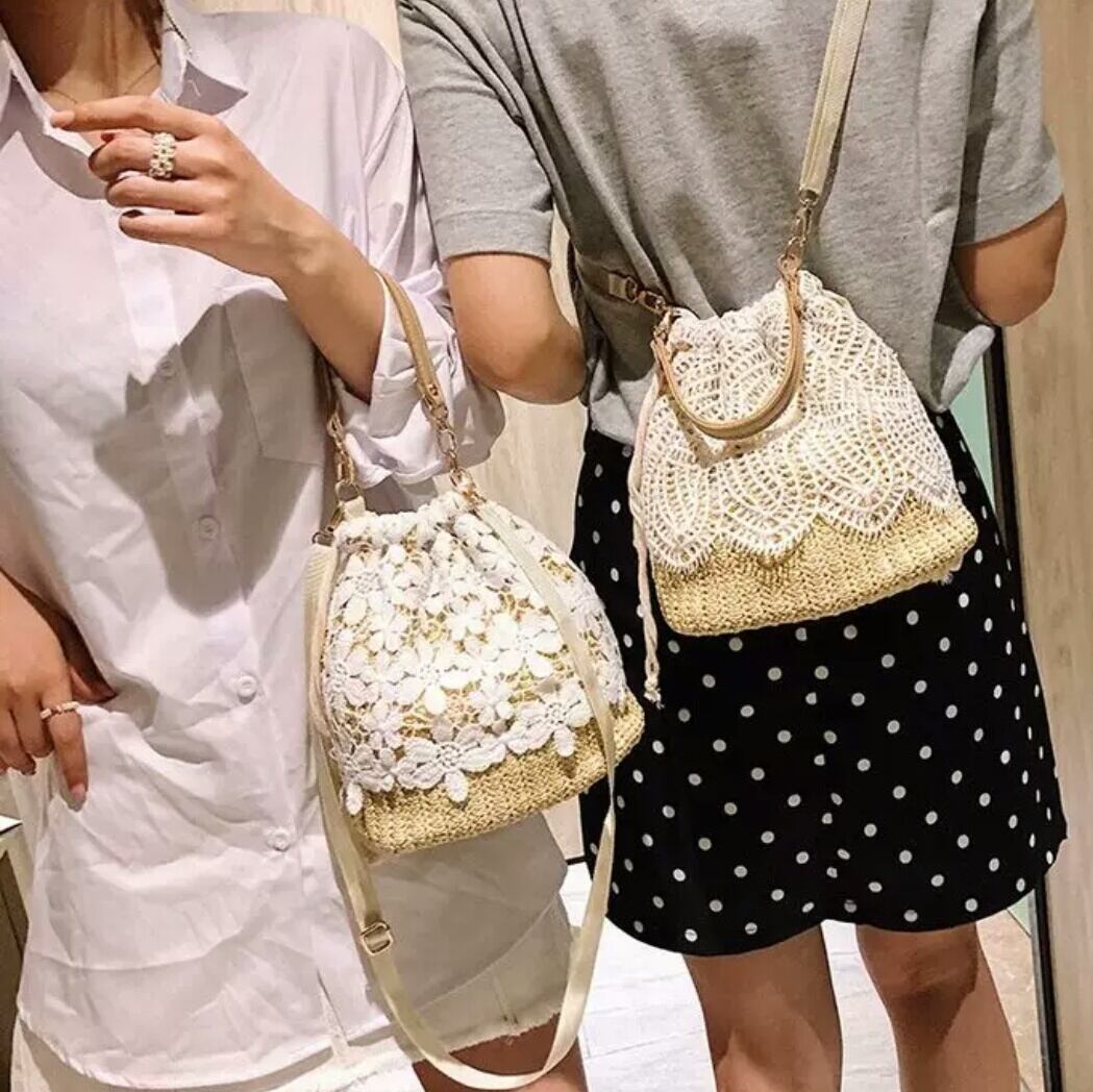 全2種2色 レース バケットバック ショルダー カバン 大人 カジュアル キレイめ 可愛い お出かけ お買い物 デート 女子会 通学 学生 通勤 韓国ファッション 春 夏