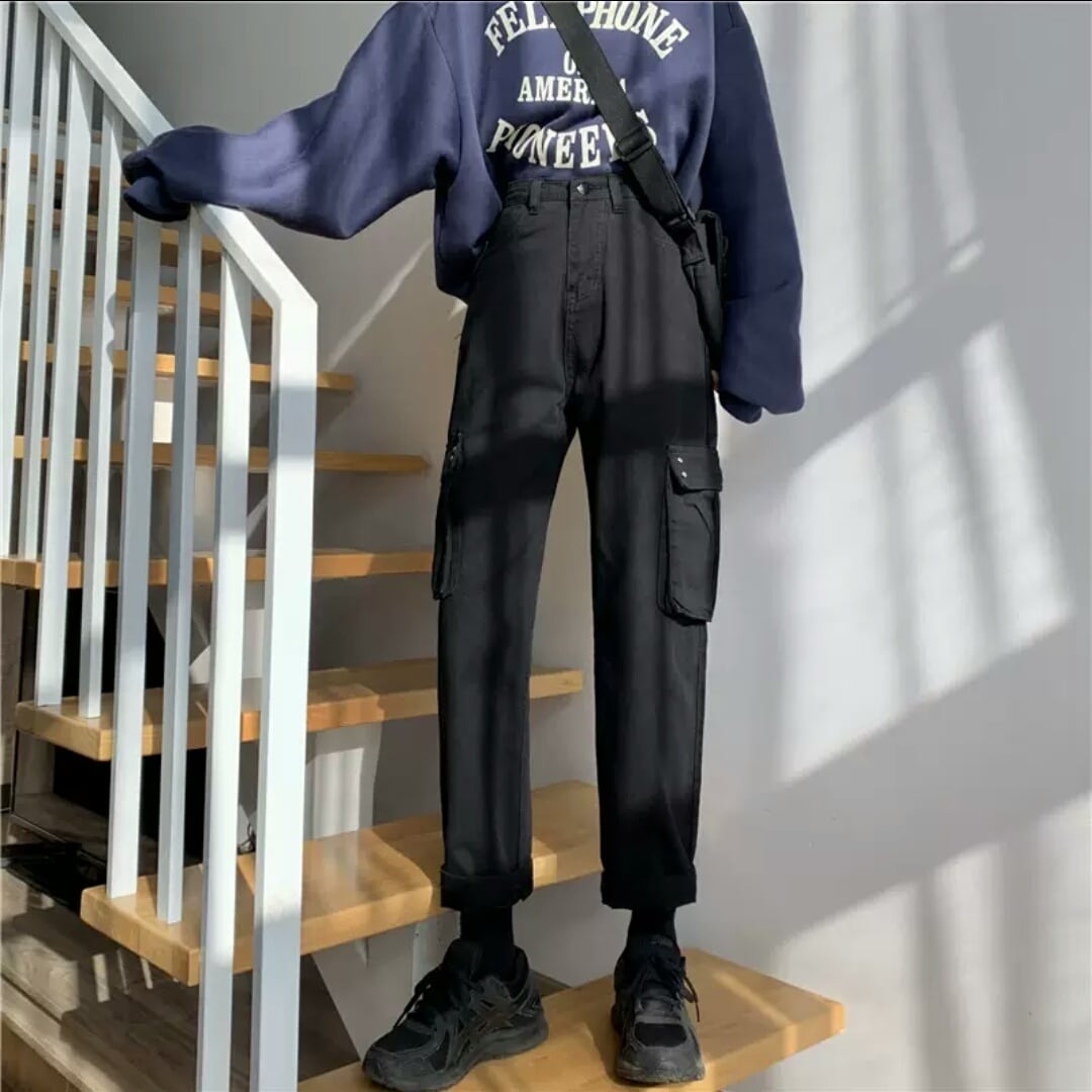 全2色 ストレート ルーズ カジュアル パンツ ボーイッシュ 大人 カジュアル スタイリッシュ お出かけ お買い物 デート 女子会 通学 学生 通勤 韓国ファッション 春 夏 秋