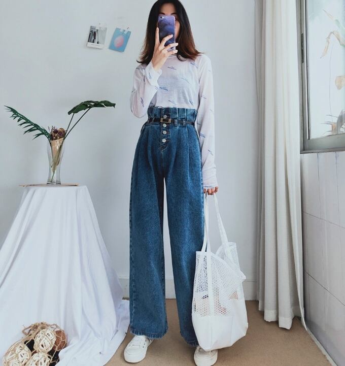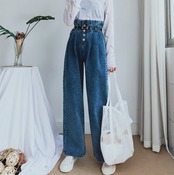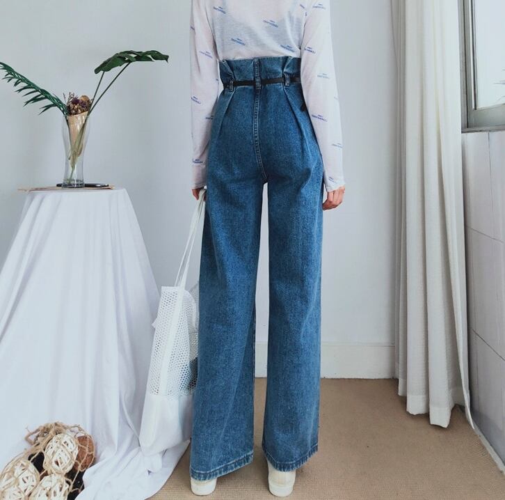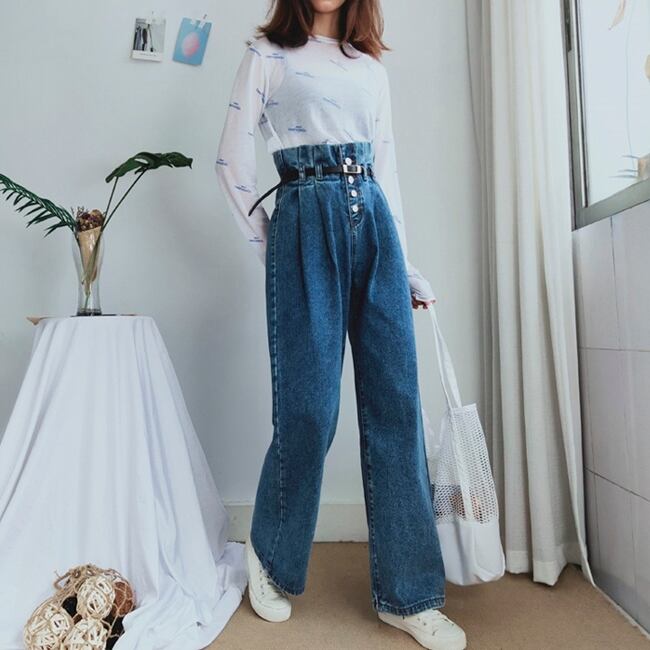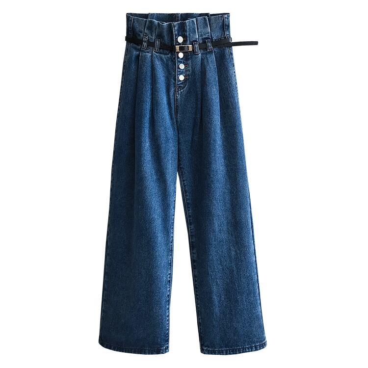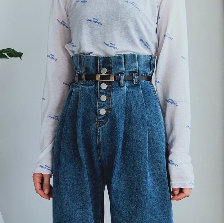デニムパンツ ボトムス ジーンズ ワイドパンツ ゆったり ハイウエスト フロントボタン カジュアル 大人可愛い ウエストベルト タックパンツ ウエストコンシャス オールシーズン 夏 春