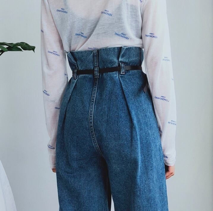 ウエストコンシャスが大人可愛いデニムパンツ。