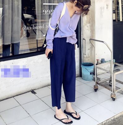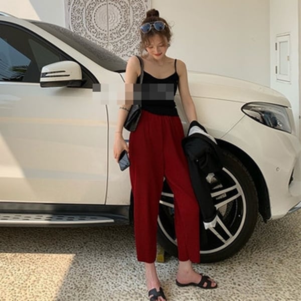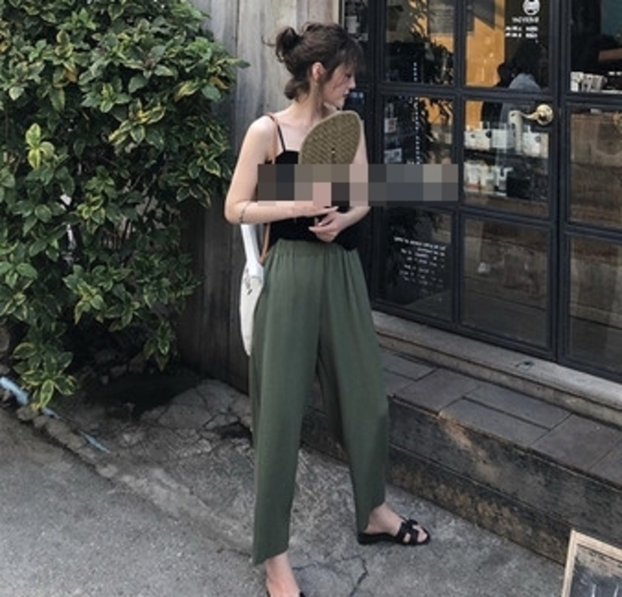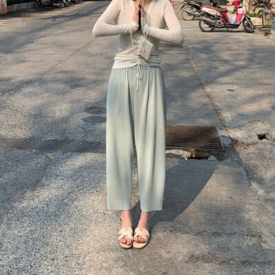 全6色 ワイドパンツ ボトムス シンプル 9分丈 無地 大人 ベーシック カジュアル デイリー ゆったり ハイウエスト ウエストゴム 春 夏