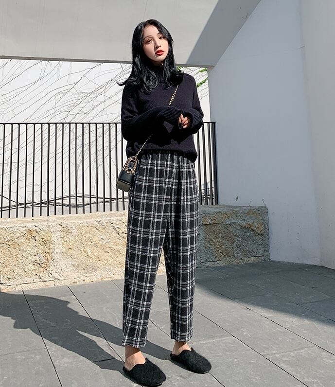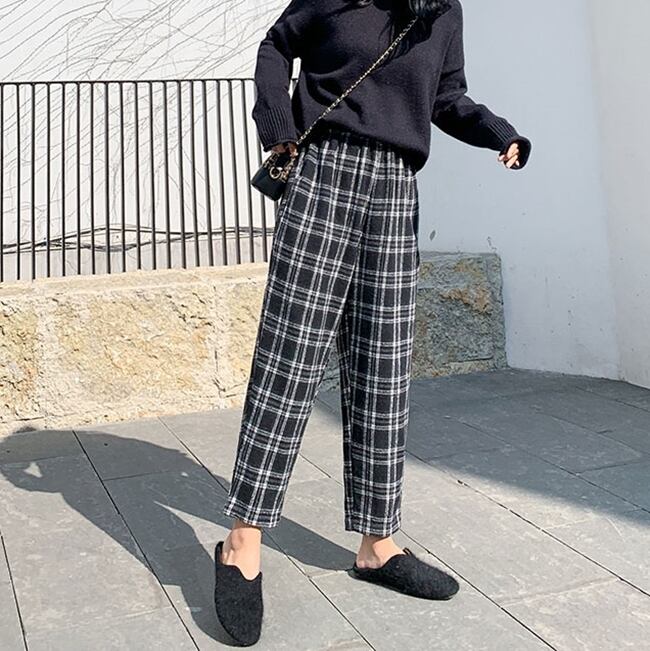 パンツ ワイドパンツ ボトムス チェック柄 アンクル丈 テーパードパンツ 9分丈 ロールアップ ゆったり 大人 ハイウエスト ウエストゴム カジュアル デイリー リラックス トレンド お出かけ ベーシック 春