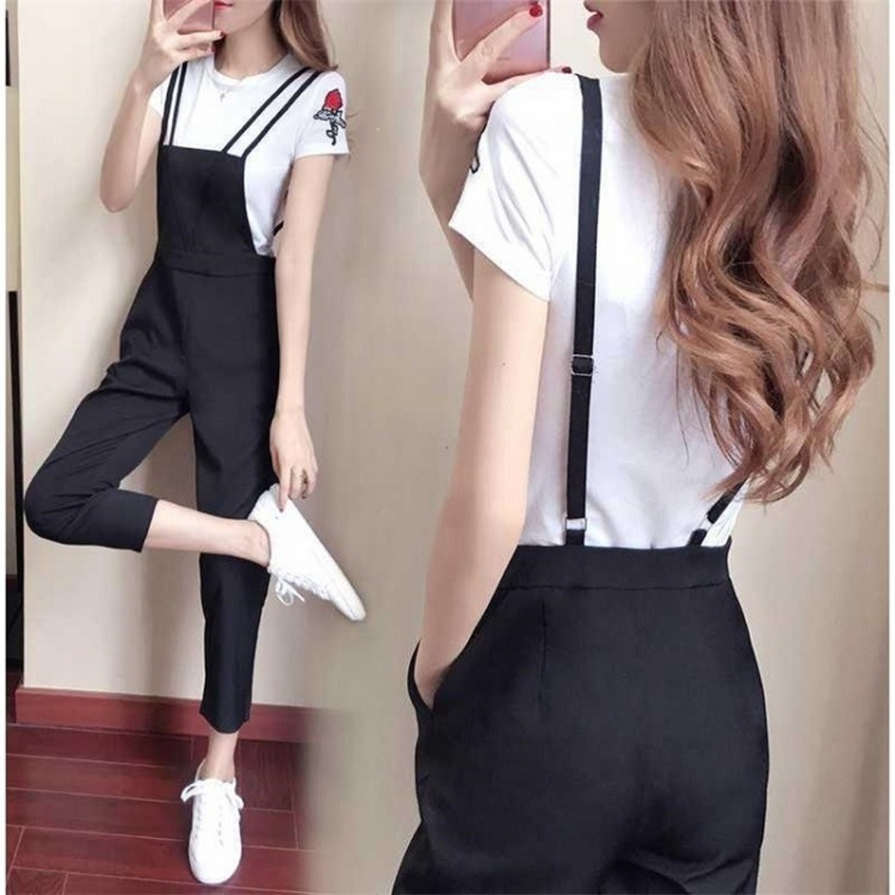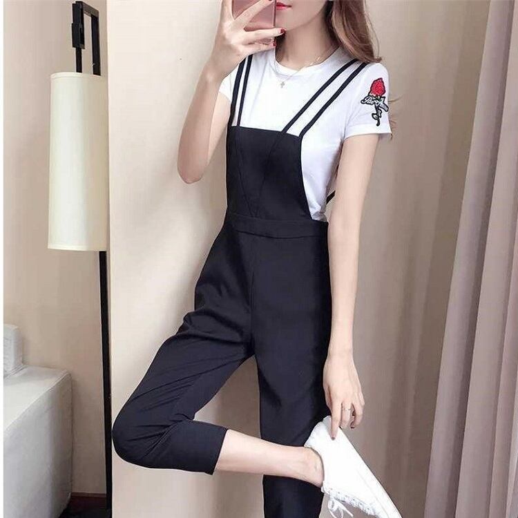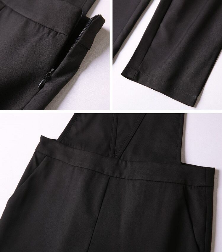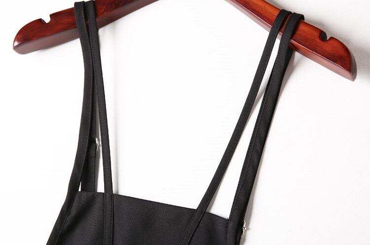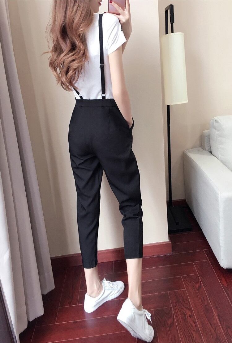 サロペット オールインワン 9分丈 ストラップ 無地 カジュアル デイリー レジャー リゾート 夏 ブラック