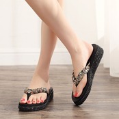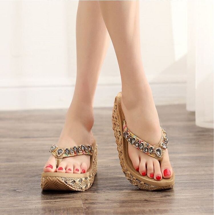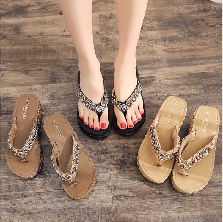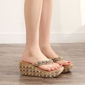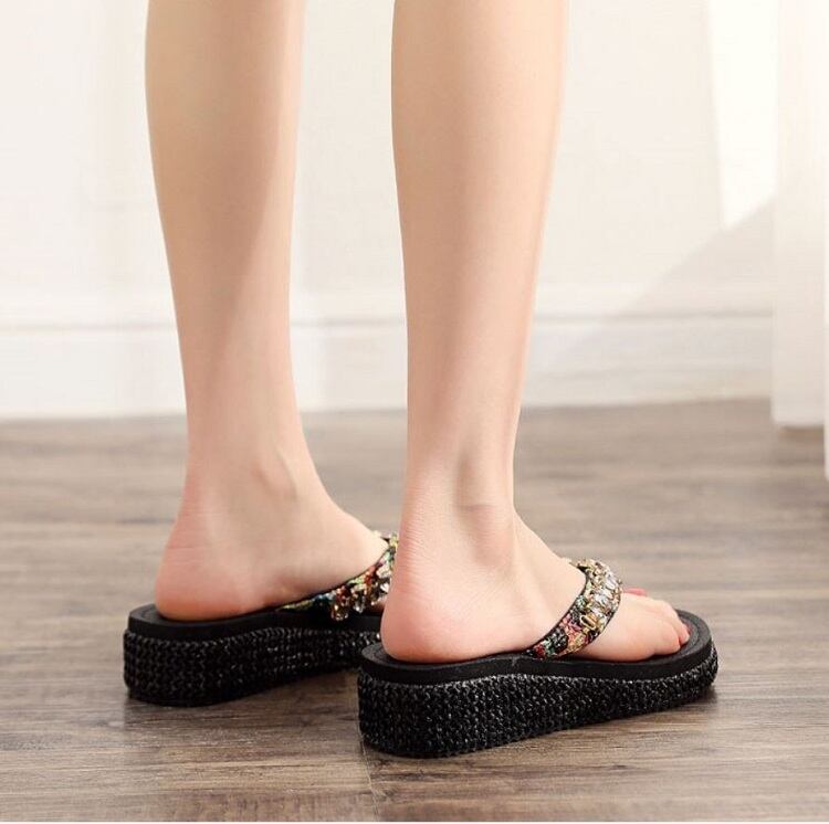 全3色2種 厚底サンダル トングサンダル ウェッジサンダル ビジュー 楽ちん 歩きやすい きれいめ リゾート カジュアル デイリー ゴールド ブラック ブラウン