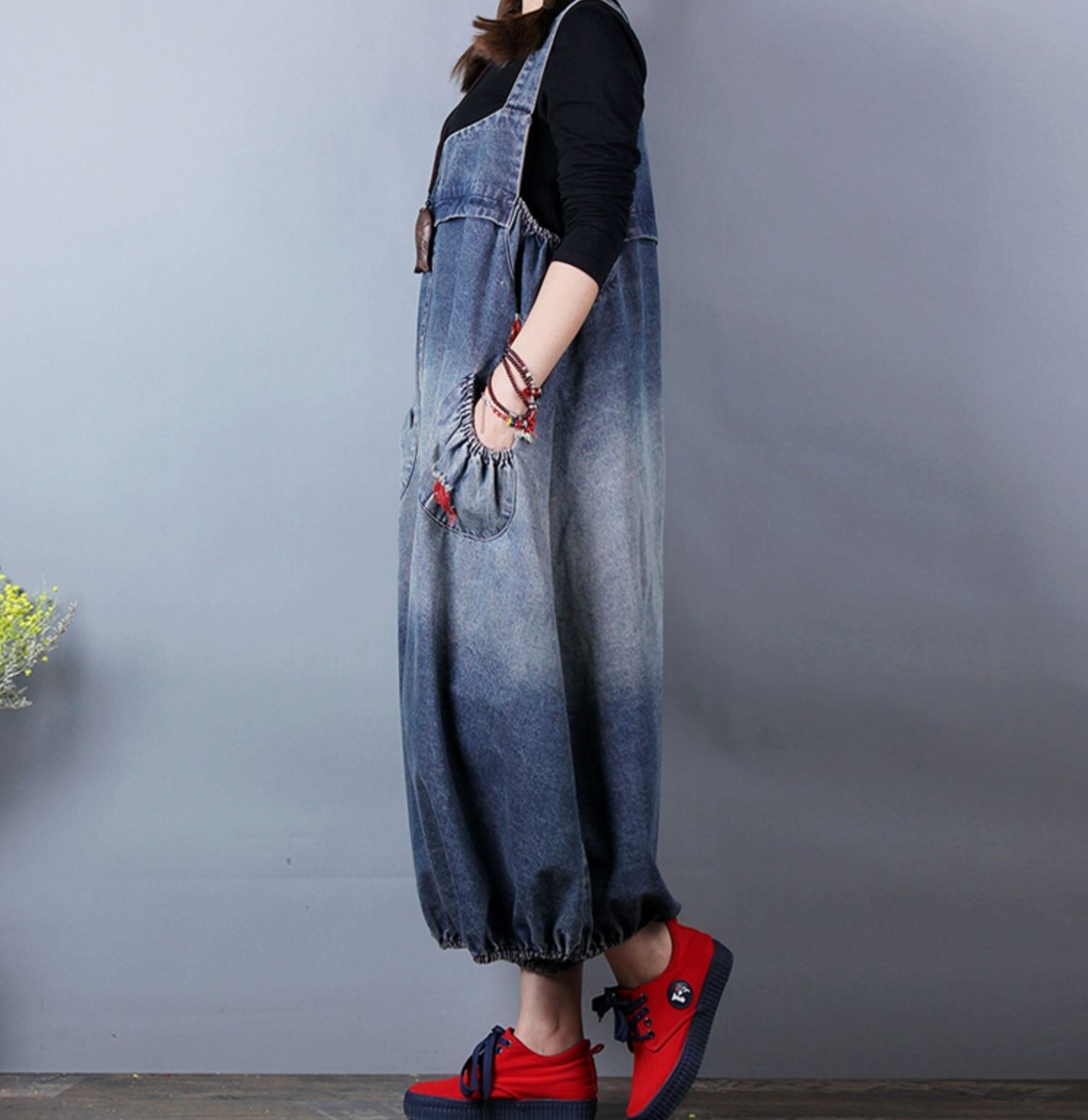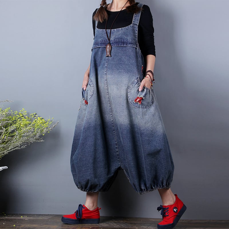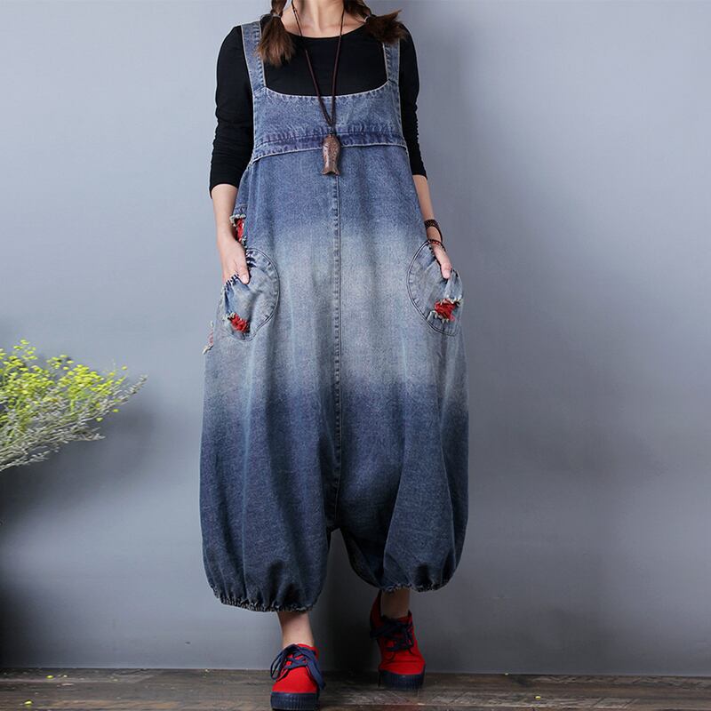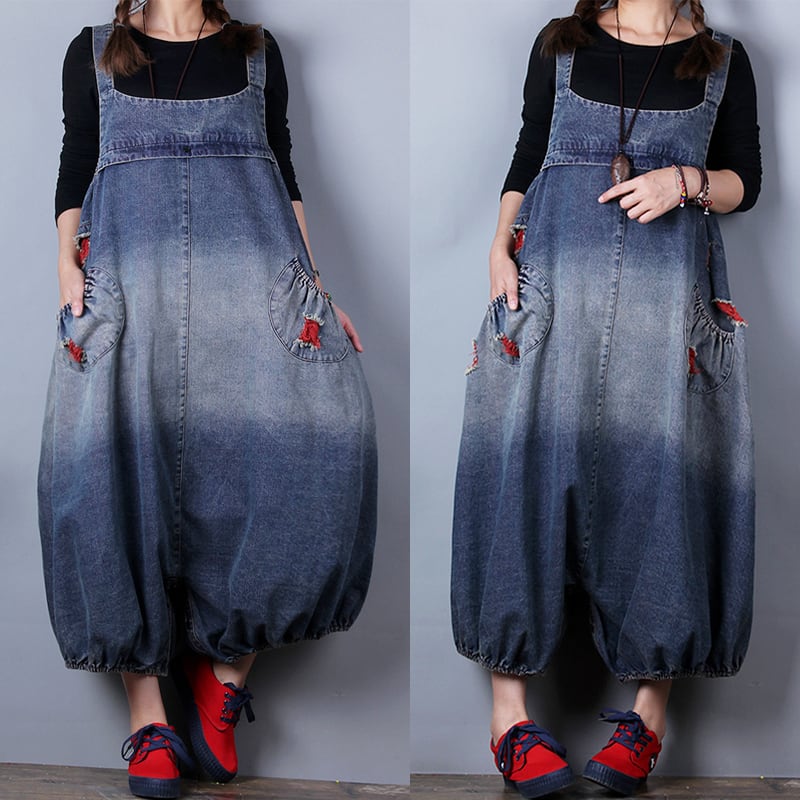 サロペット サルエル オールインワン オーバーオール オーバーサイズ デニムサロペット ジーンズ ストリート系 ゆったり ビッグシルエット グラデーション カジュアル クール 個性的 ラフ 春 夏