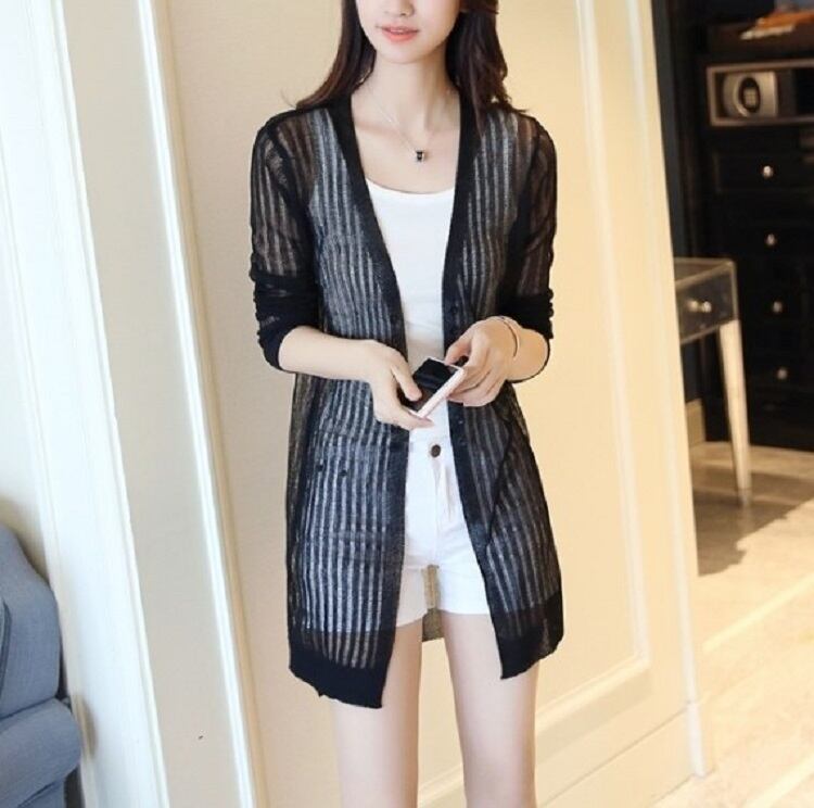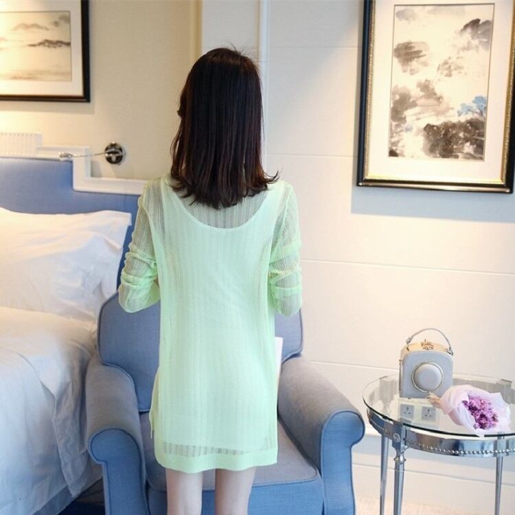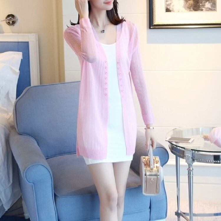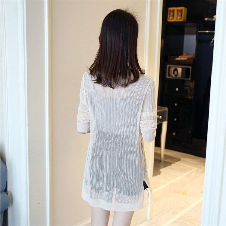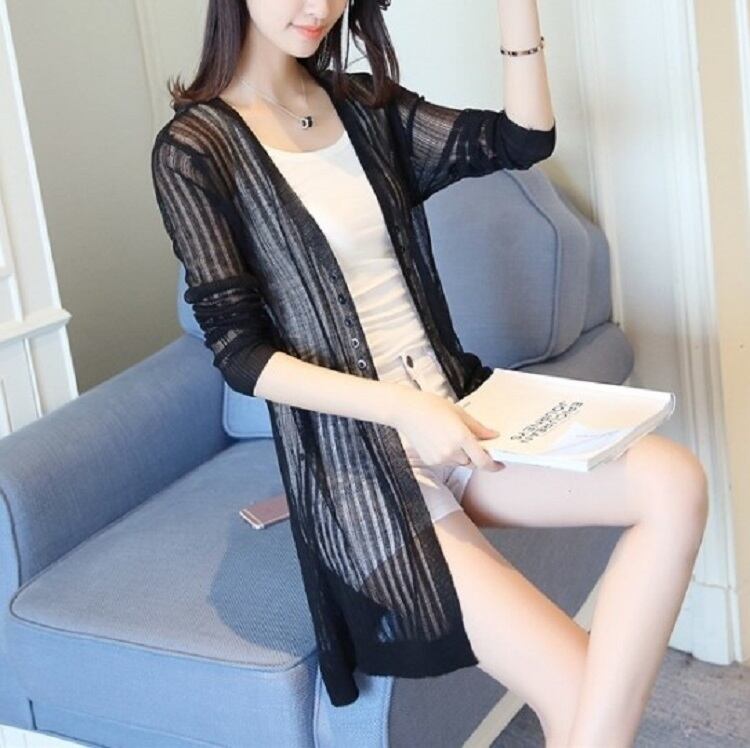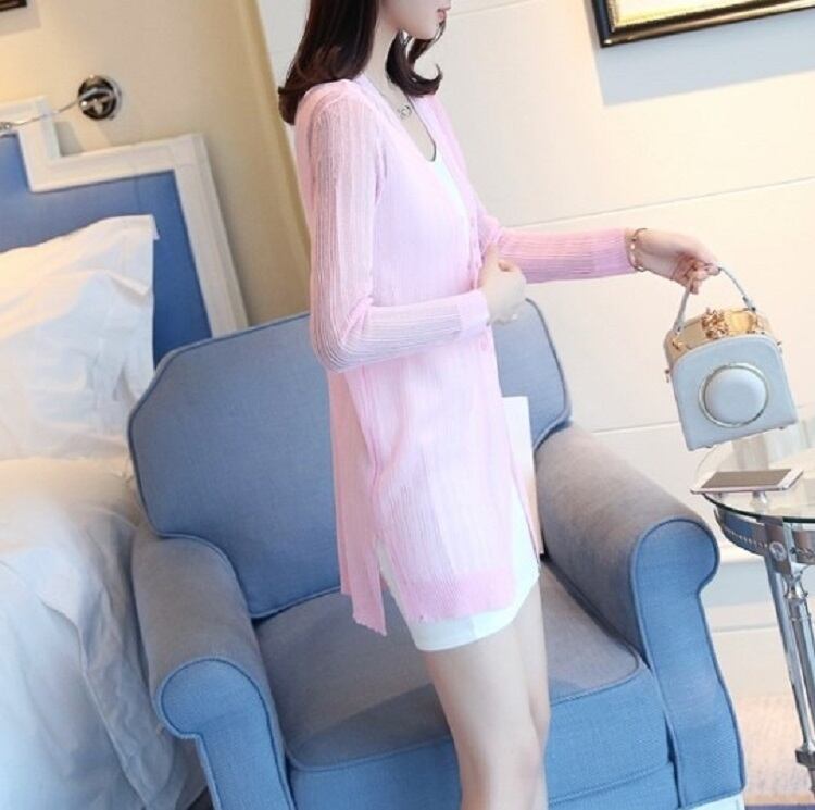 全4色 カーディガン 羽織 長袖 薄手 透け感 ゆったり 日焼け対策 冷房除け きれいめ カジュアル リゾート 夏 ピンク オフホワイト ブラック グリーン