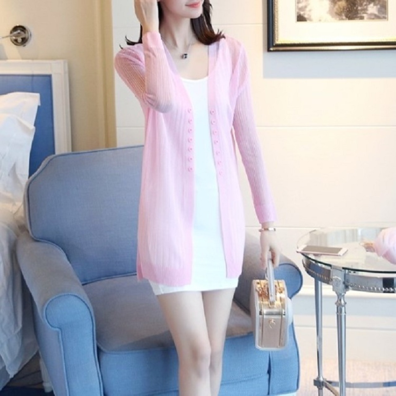 ベーシックなデザインとカラーが着回し力抜群のサマーカーディガン。