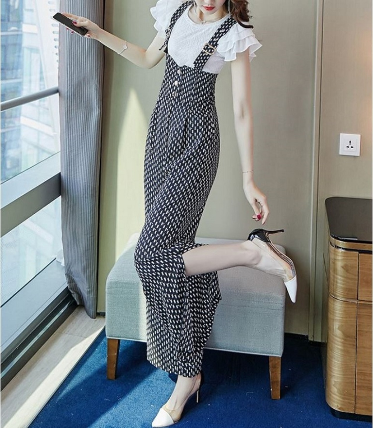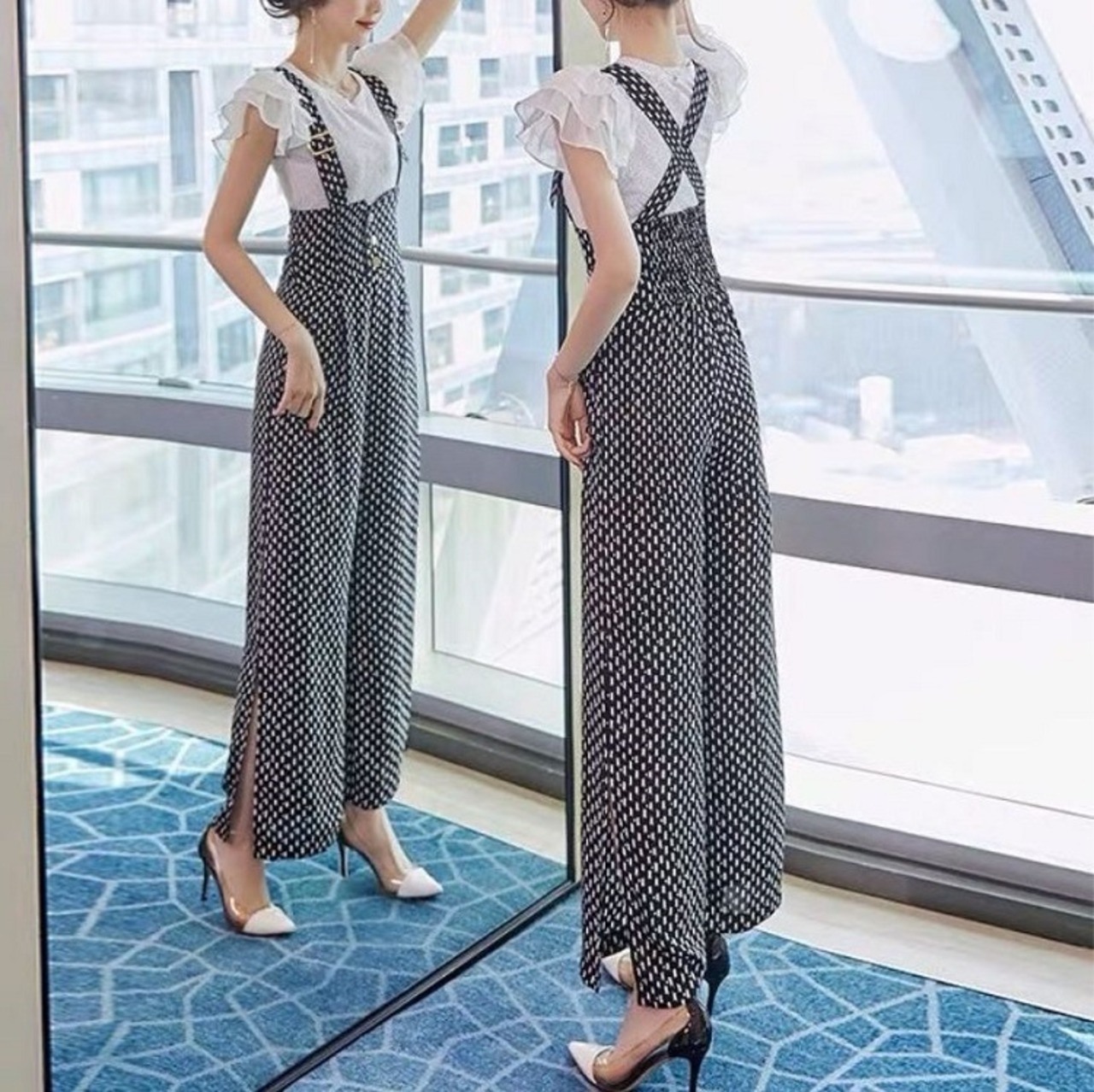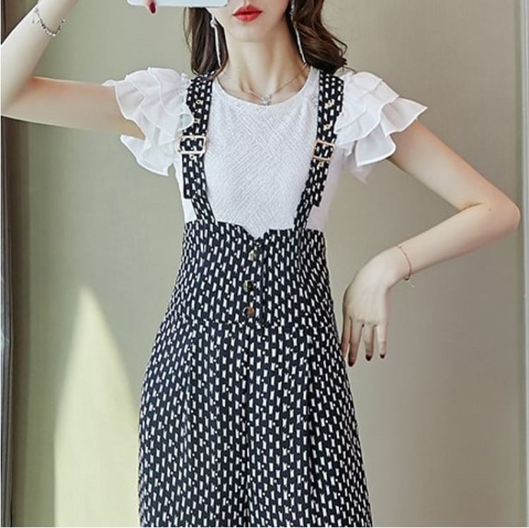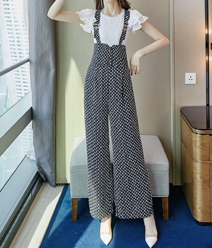 ハイウエストのワイドパンツが大人可愛いサロペット。