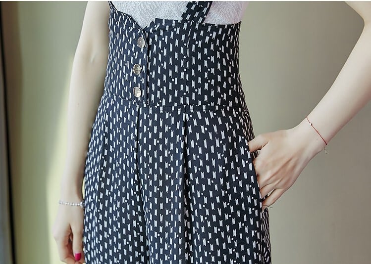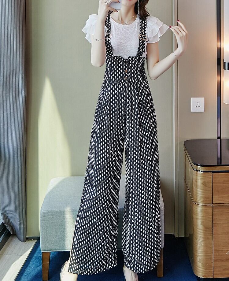 サロペット オーバーオール ワイドパンツ シフォン ハイウエスト ゆったり レトロ きれいめ カジュアル お呼ばれ デート 女子会 リゾート 夏 ブラック