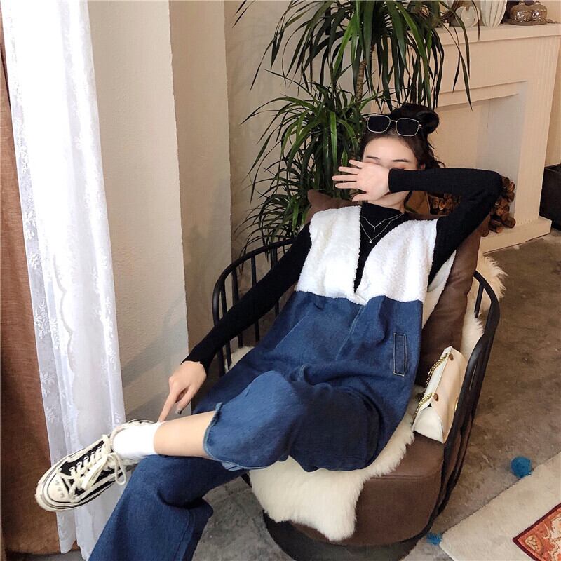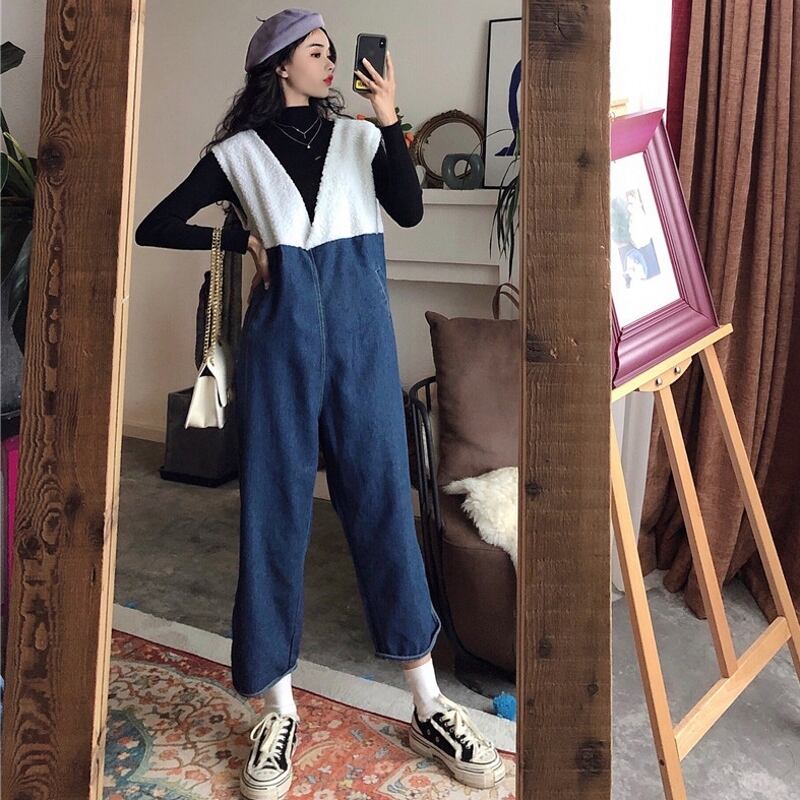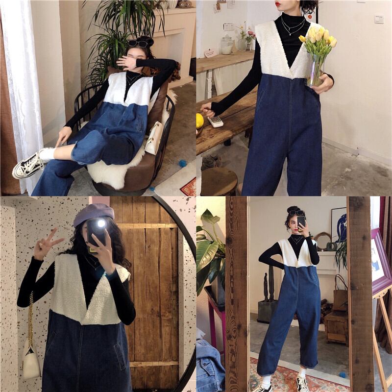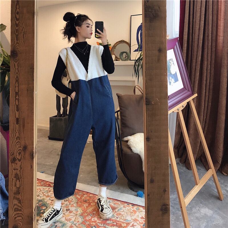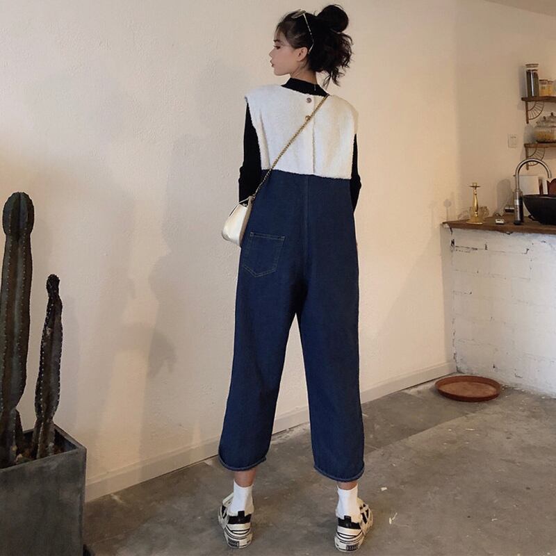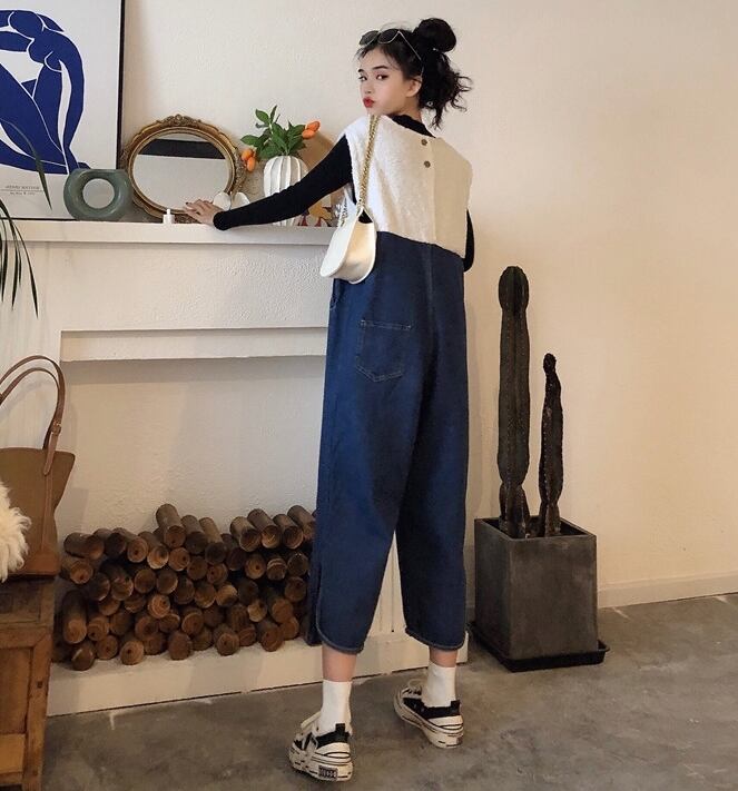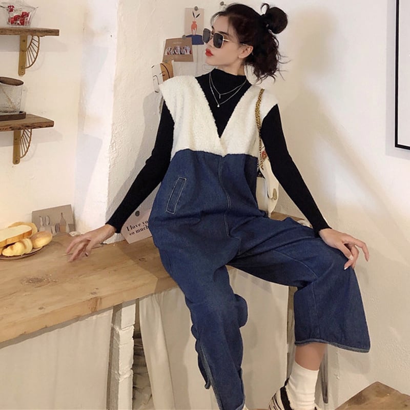 サロペット デニムサロペット ジャンプスーツ オールインワン オーバーオール 7分丈 Vネック ワイドレッグ ゆったり 大人可愛い デート お出かけ カジュアル 春 夏