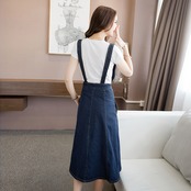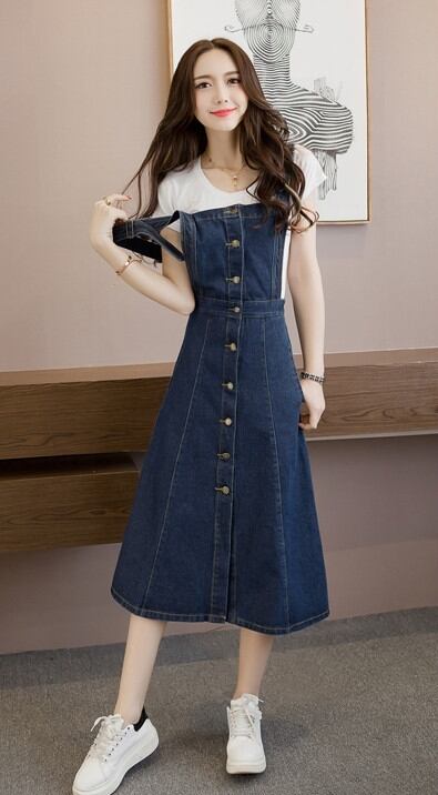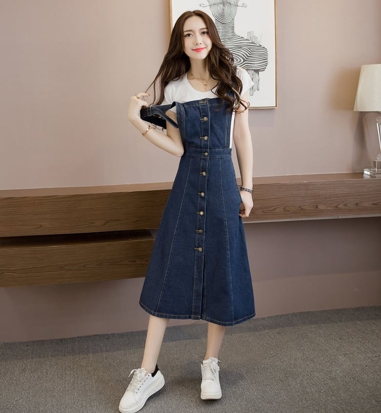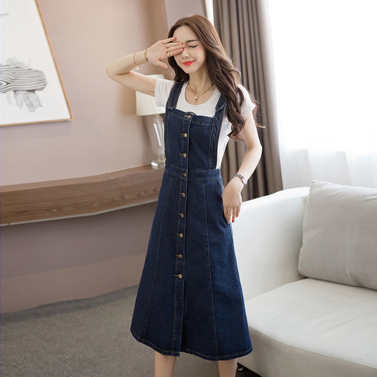サロペットスカート ジャンパースカート デニムワンピース ミモレ丈 フロントボタン Aライン カジュアル 大人 デート お出かけ 韓国ファッション 春 夏
