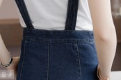 デニム素材でトレンドを感じさせるサロペットスカート。