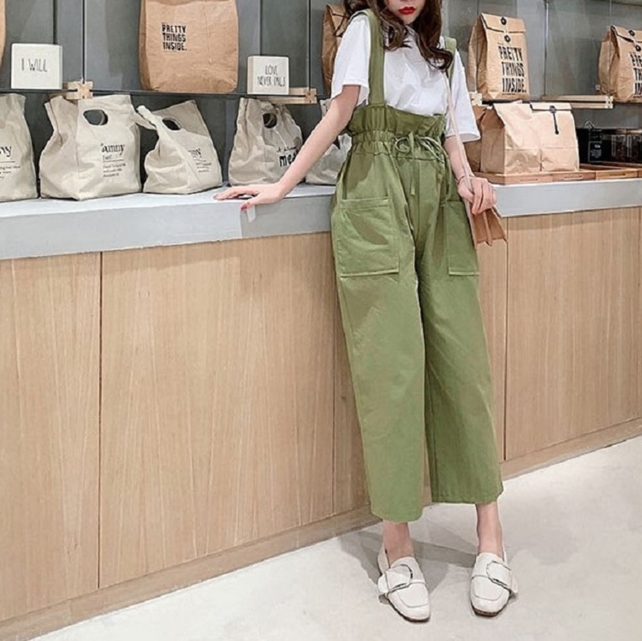 ウエストギャザーが可愛いハイウエストパンツ。