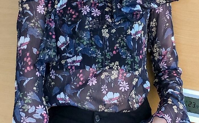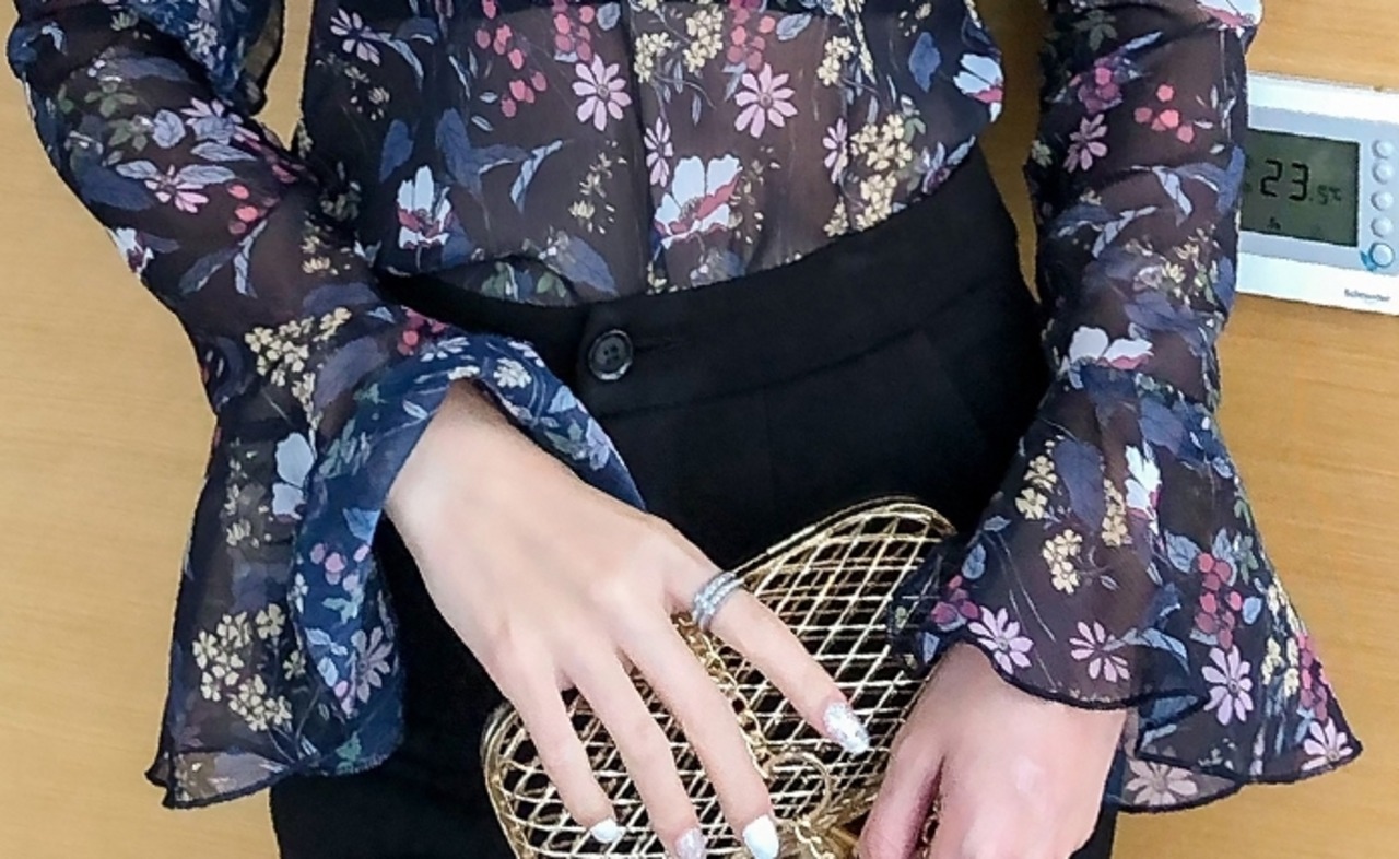 花柄が上品で大人可愛い印象のブラウス。