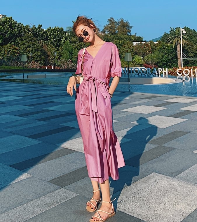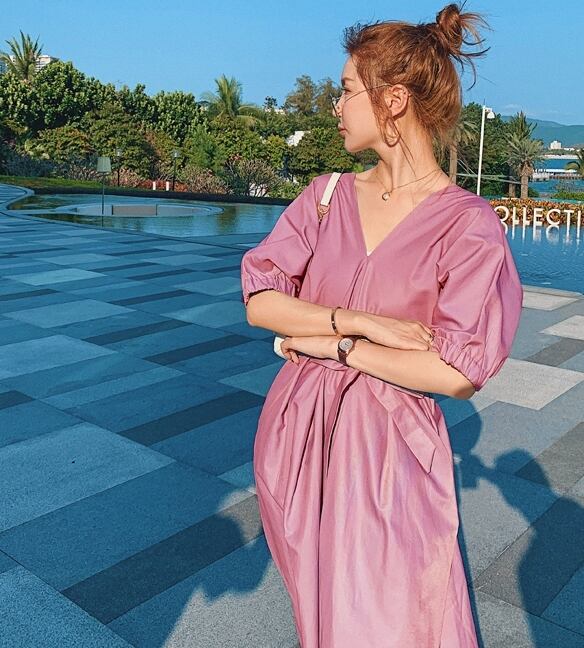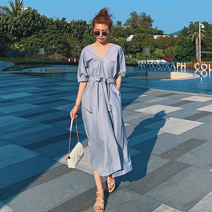 上品で大人っぽい印象のロング丈ワンピース。