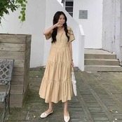 ティアードデザインが可愛らしいロング丈のワンピース。