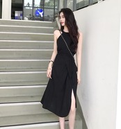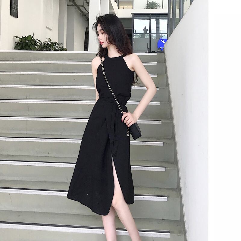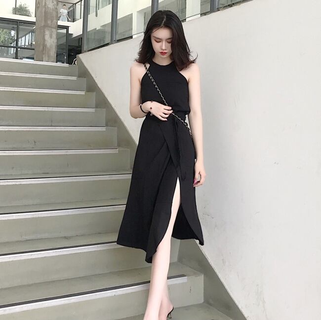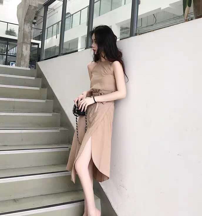 セットアップ ツーピース ブラウス スカート サイドスリット ウエストリボン ノースリーブ クルーネック 無地 ミモレ丈 スリム 大人 上品 カジュアル きれいめ デート 春 夏