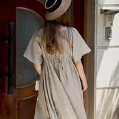 リネン素材のナチュラルカラーが涼しげなロングワンピース。