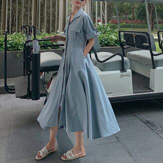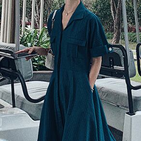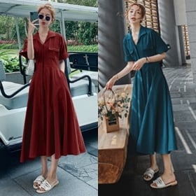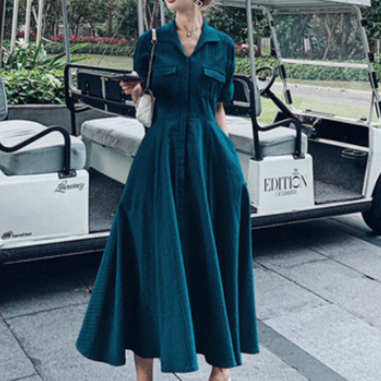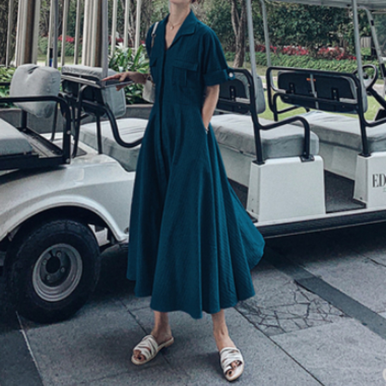ワンピース 襟付き ポケット エレガント デート フレア 人気 春夏 カジュアル お出掛け 女子会 リゾート 半袖 ロングワンピ ロング丈 ドレス 夏 海 ビーチ
