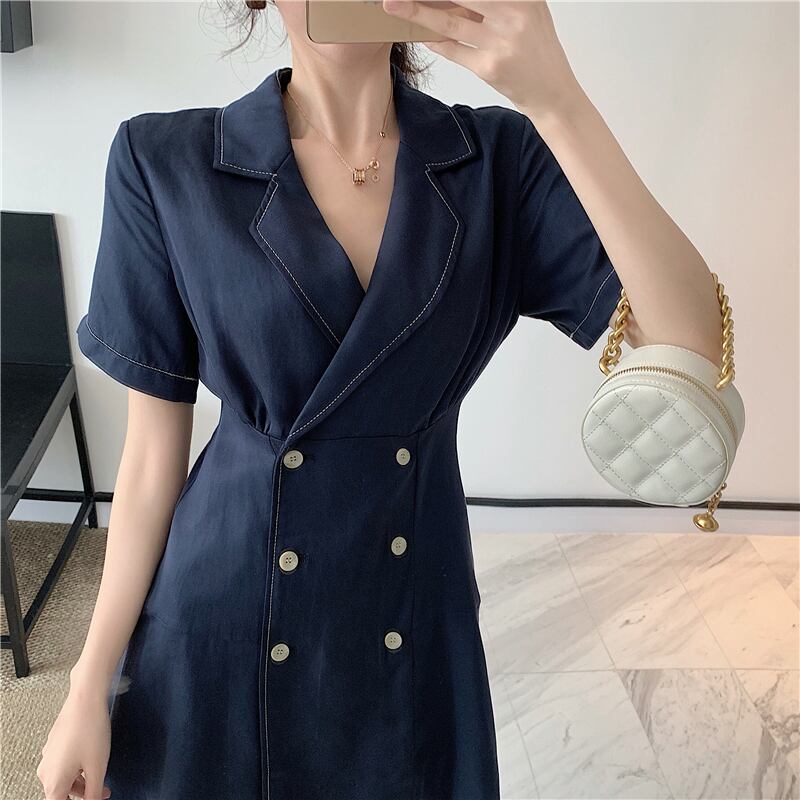 フロントボタンがポイントなミニ丈ワンピース。