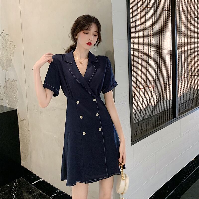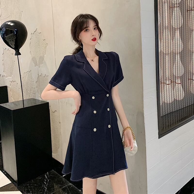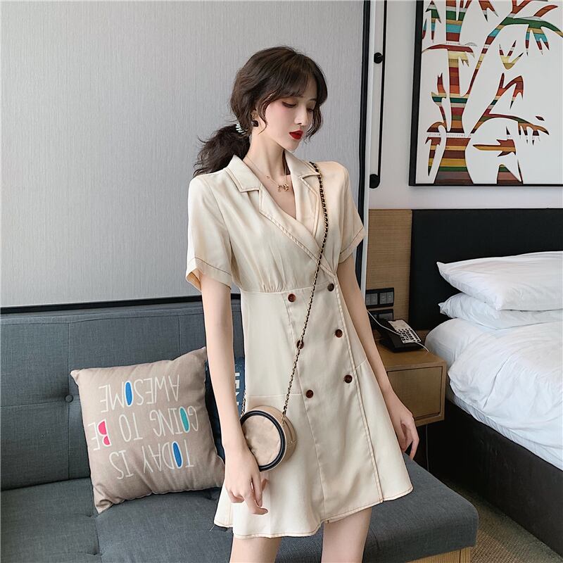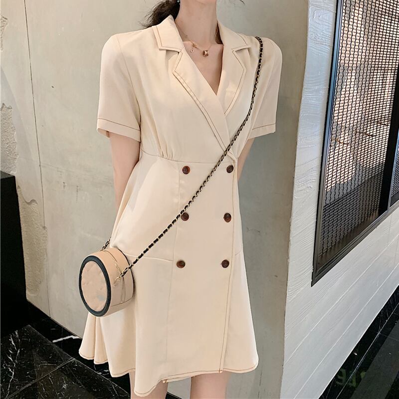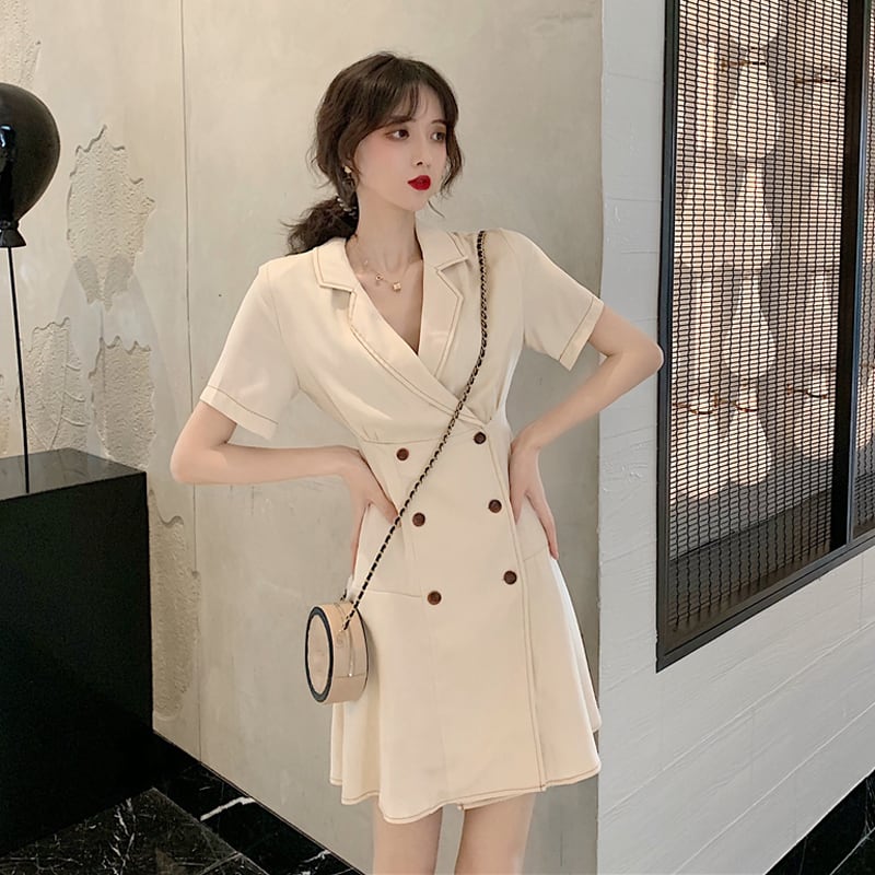 全2色 ワンピース フロントボタン トレンチ カシュクール フレア ミニ丈 スリム 半袖 Vネック 上品 可愛い レトロ カジュアル きれいめ デート 春 夏