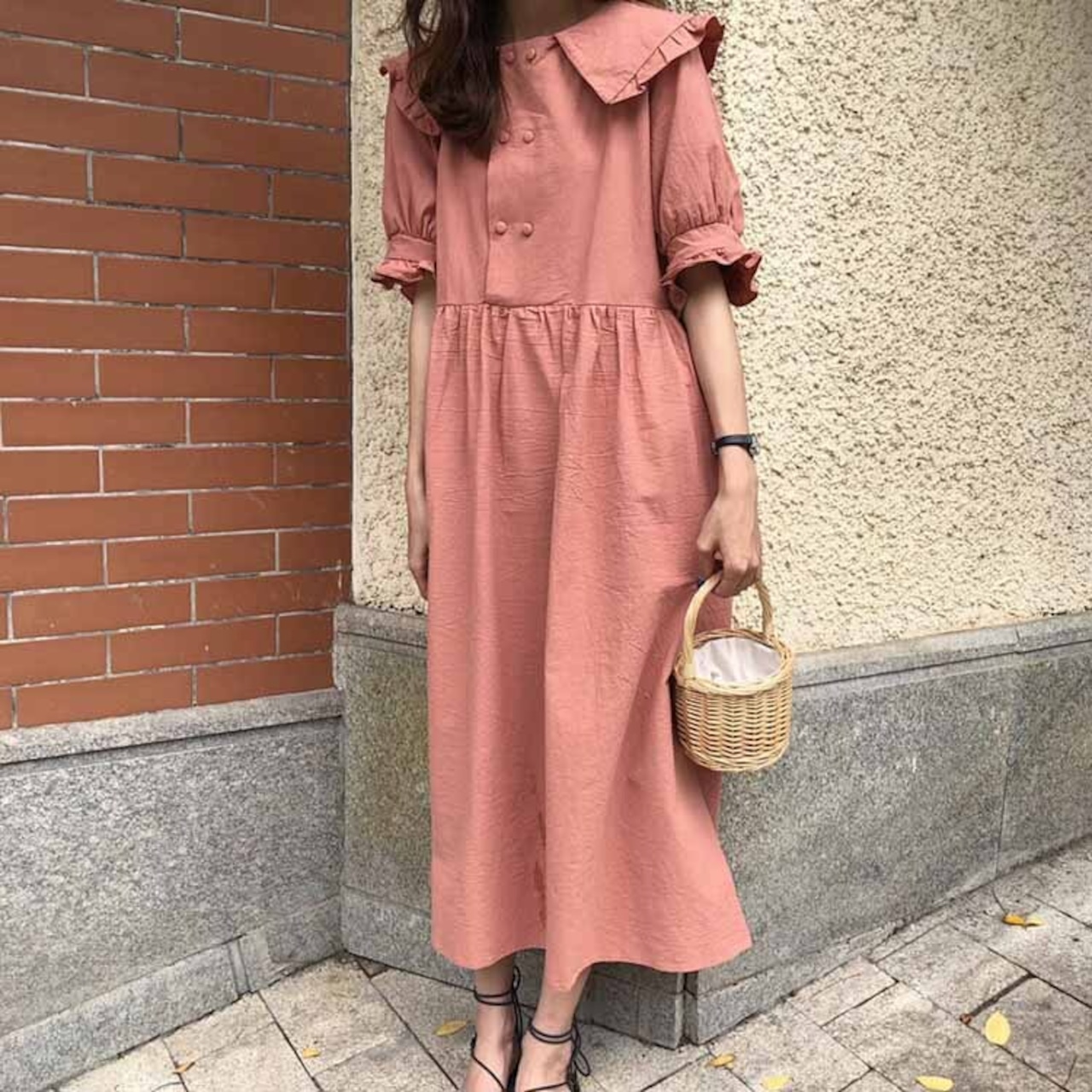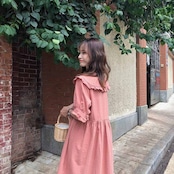 フリルが可愛いロング丈ワンピース。