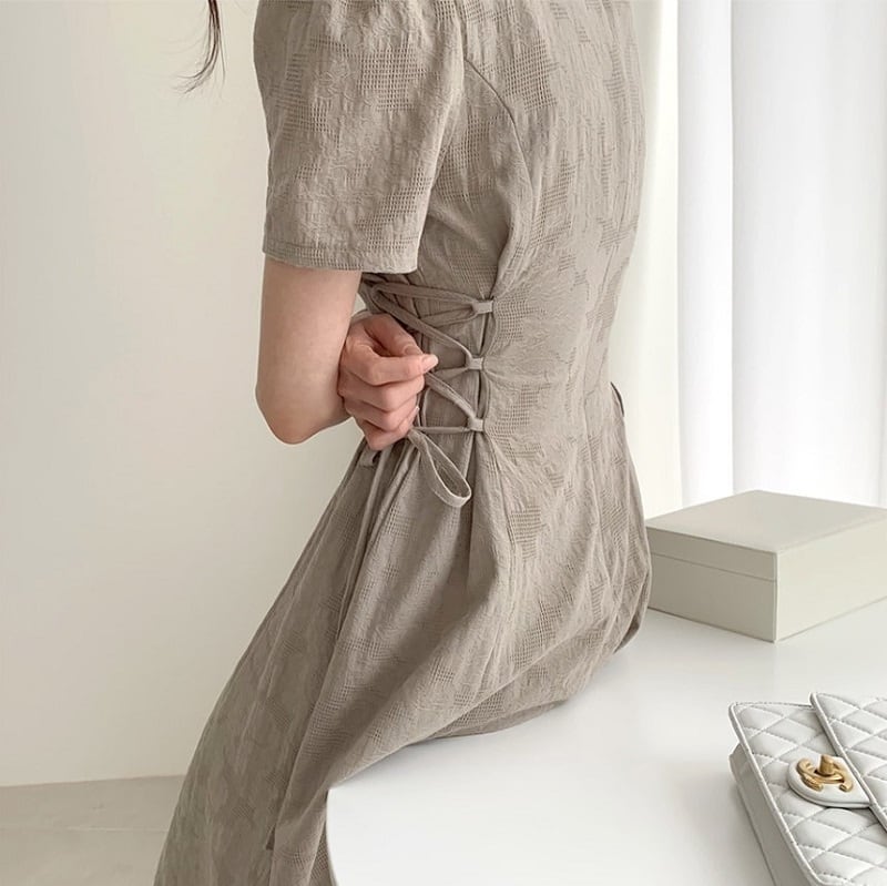 ウエストのストラップリボンで着心地を調整できるのが嬉しいポイント!
