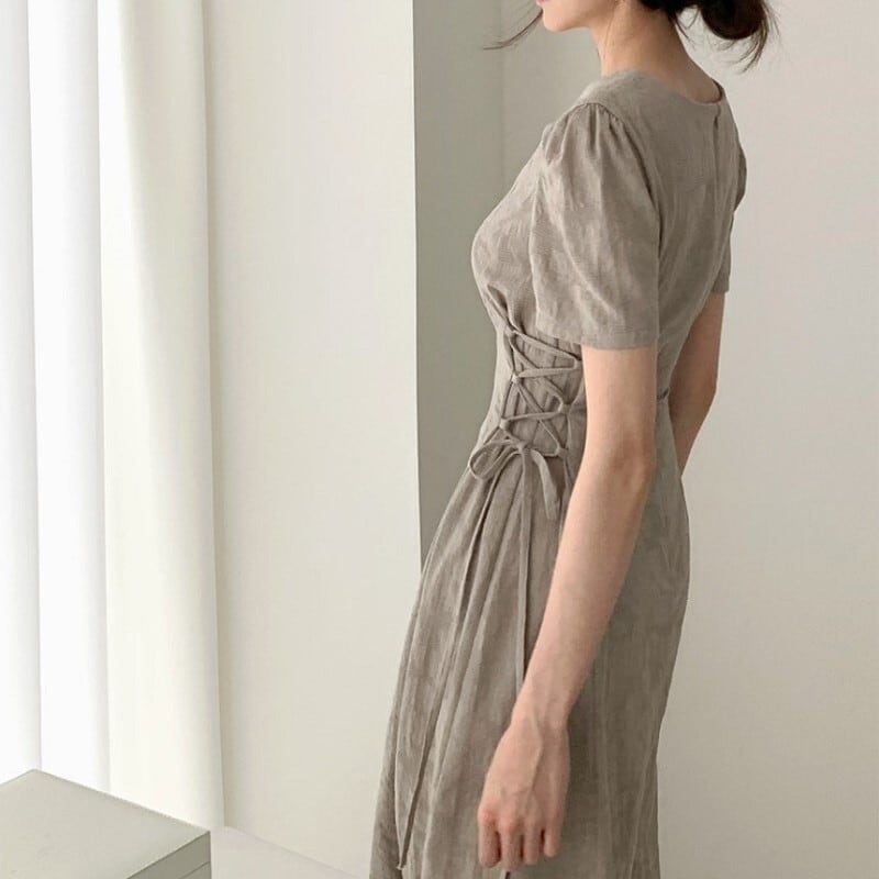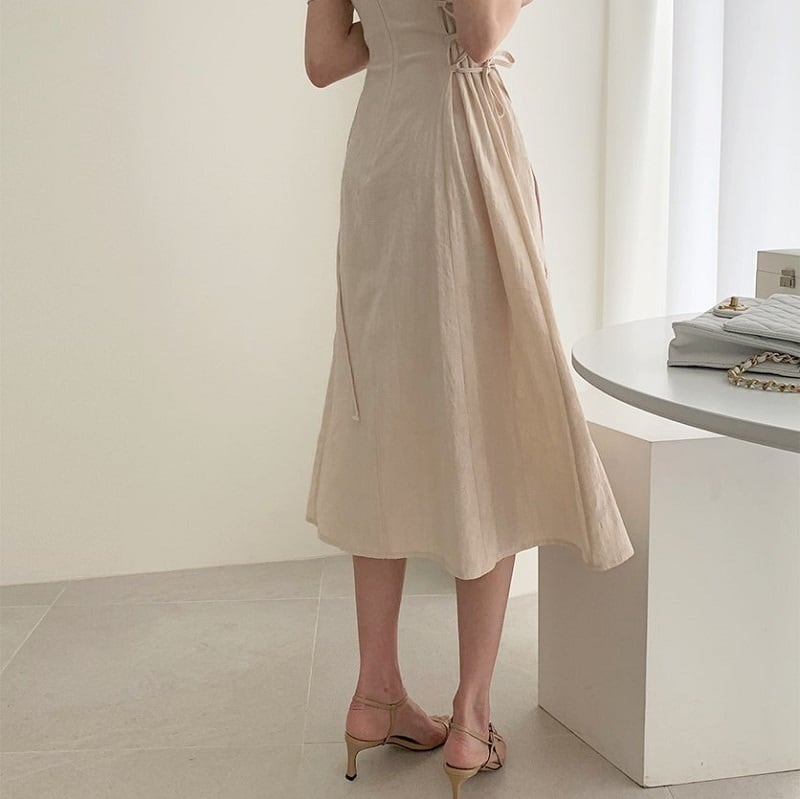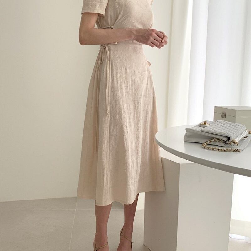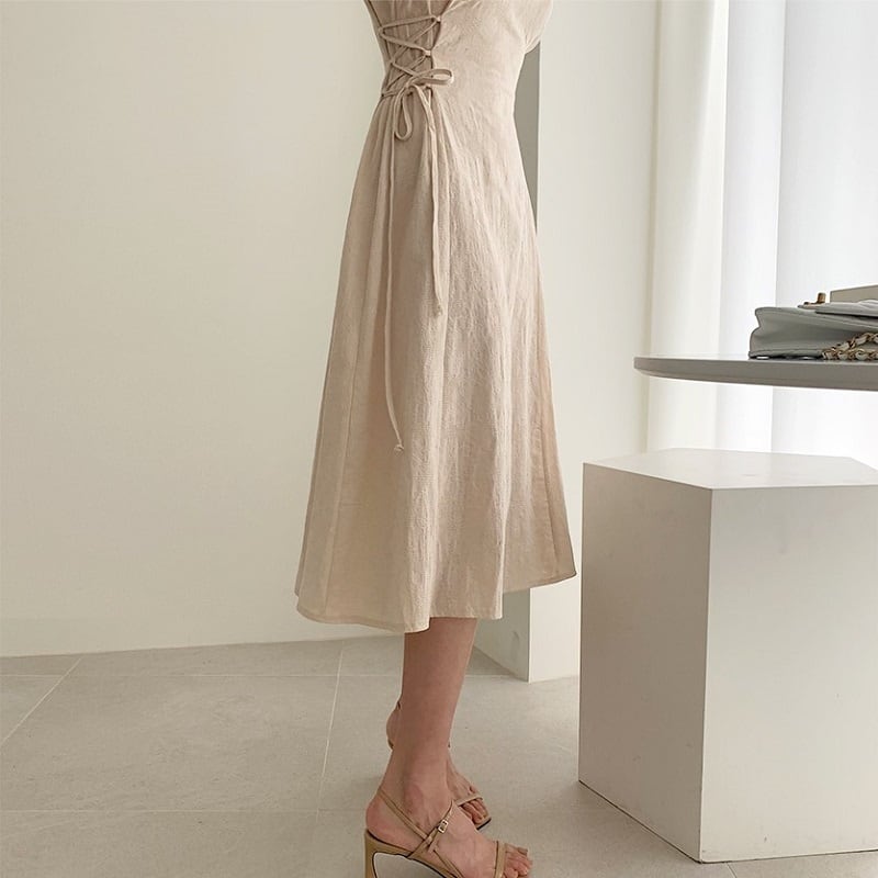 リネン素材のナチュラル感が涼しげなロングワンピース。