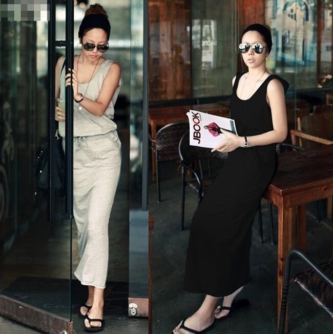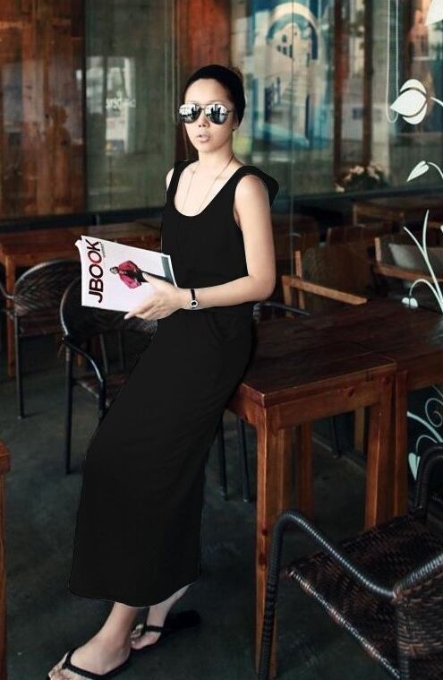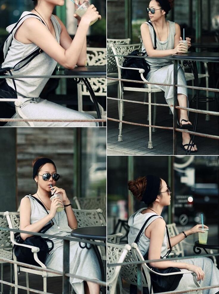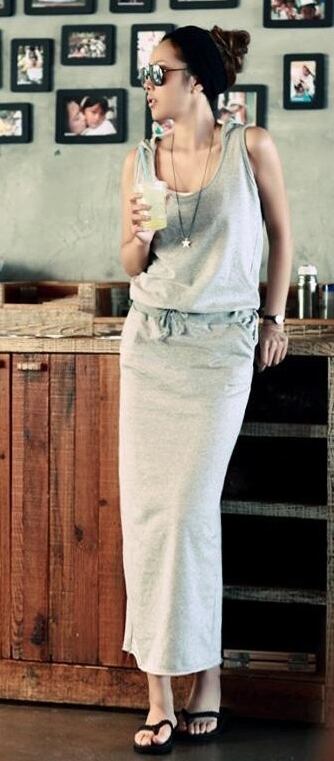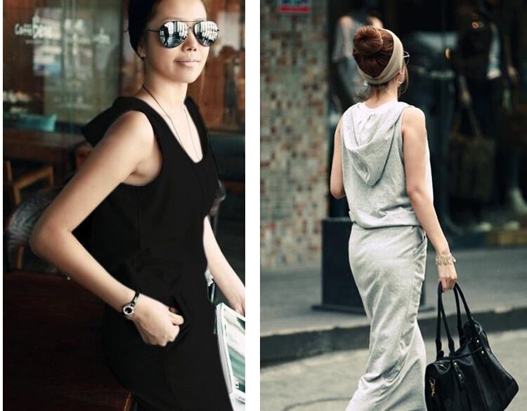 全2色 ワンピース ロング丈 ウエストシャーリング ノースリーブ フード付き 無地 Uネック シンプル カジュアル デイリー ラフ お出かけ ベーシック 大人 韓国ファッション 春 夏