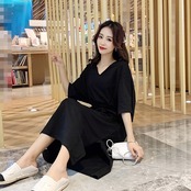 トレンドのゆったりシルエットで程よい抜け感を演出するミモレ丈ワンピース。