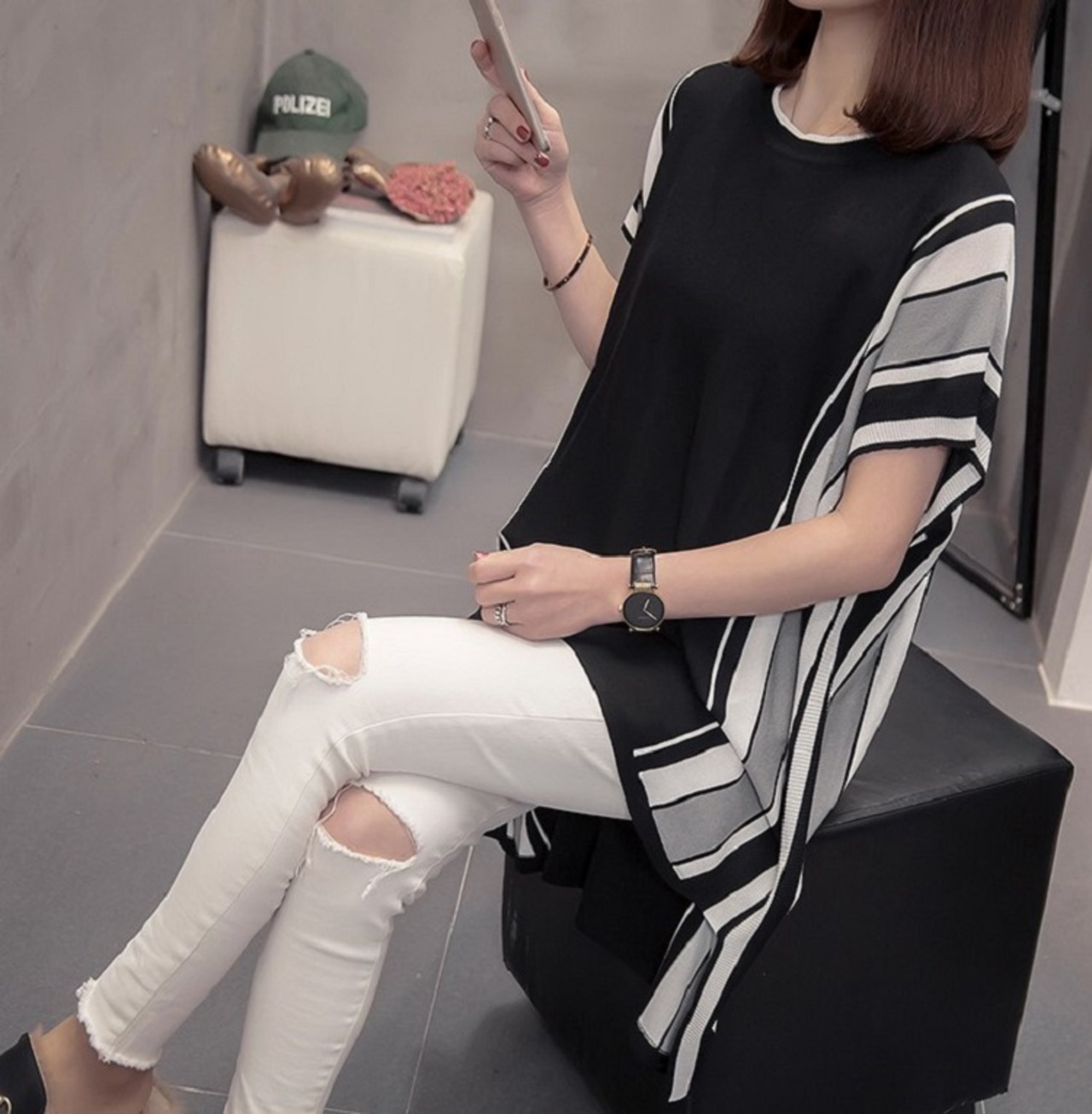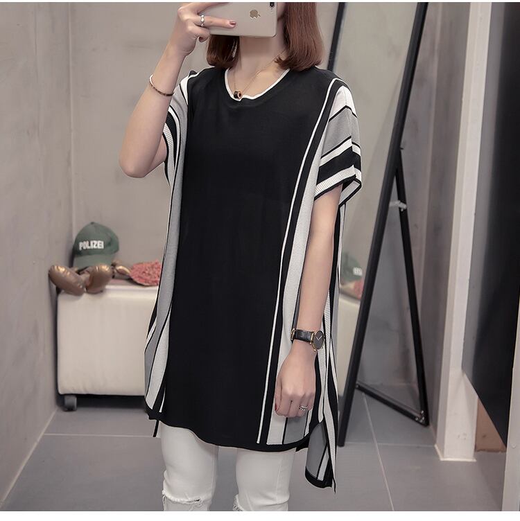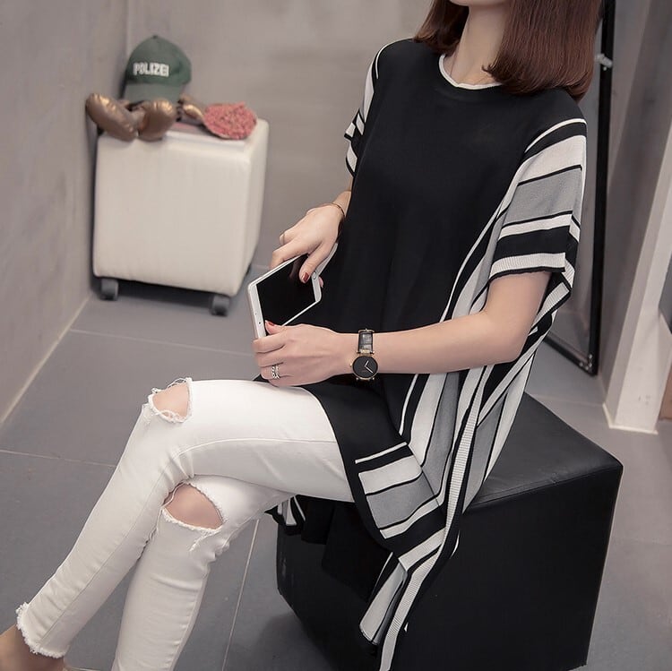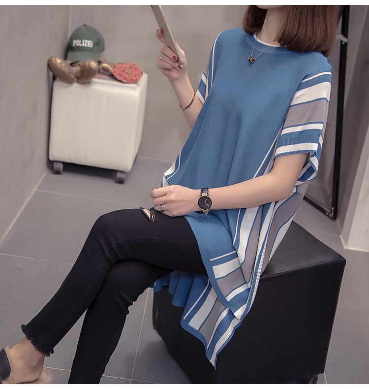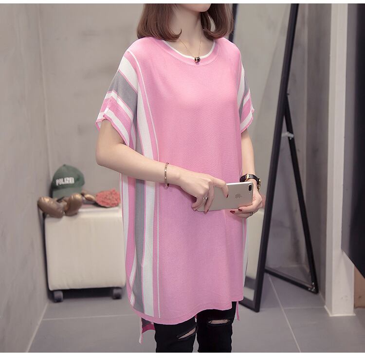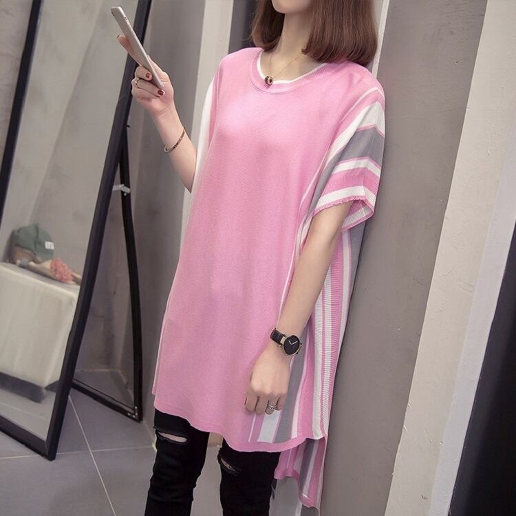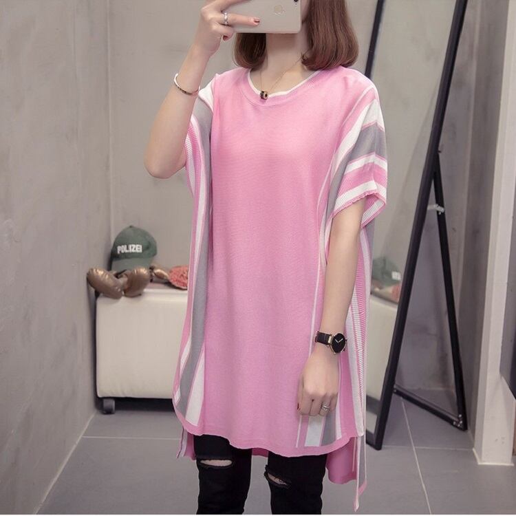 長めのチュニック丈が女性らしいサマーニット。