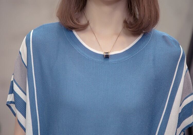 全3色 大きいサイズ サマーニット トップス チュニック ラウンドネック 体型カバー 着痩せ 半袖 シンプル きれいめ カジュアル お呼ばれ デート オフィス 夏 2XL 3XL 4XL ブルー ピンク ブラック