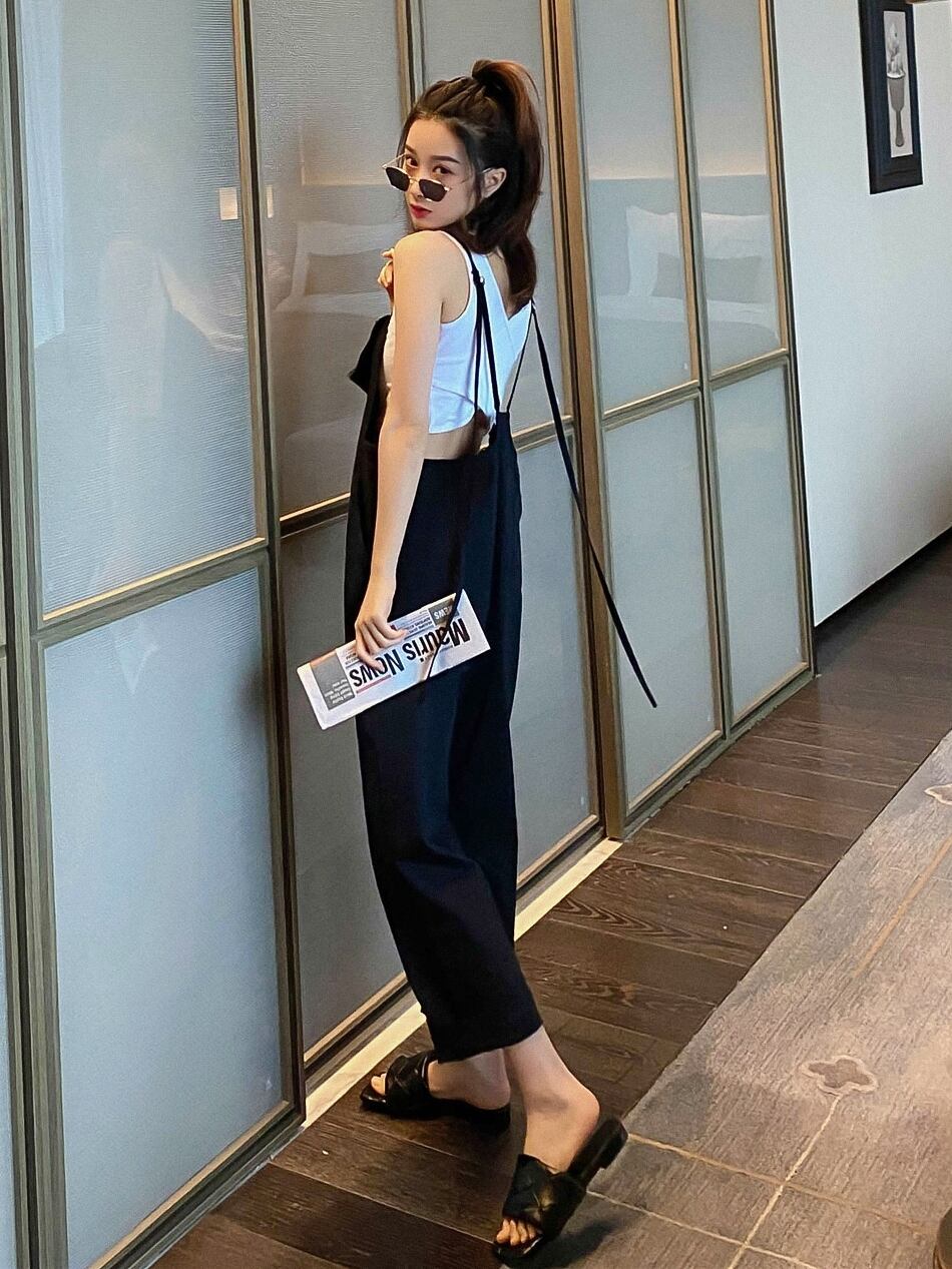背中が開いたバックスタイルが程よい抜け感を演出するインナーとサロペットの2点セット。